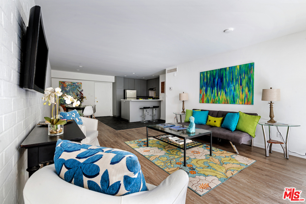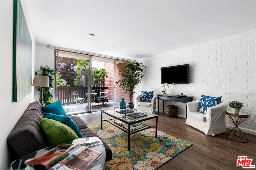 Brentwood Condo in a Garden Courtyard Setting. The Sunset Terrace Condominiums is only a block from the Brentwood Village. Very close to shops, restaurants, Getty Museum and park. Well laid out floor plan overlooking the courtyard. New and beautifully laid engineered plank floors throughout. Living room opens to your patio and courtyard for your enjoyment. Kitchen with stainless steel appliances, breakfast bar and slate floors. There's good amount of closet space, central heat and ac, one car security parking. Amenities include a pool, gym, clubhouse and a roof top terrace. Close proximity to UCLA, dog park, freeway, and Brentwood Farmers Market.