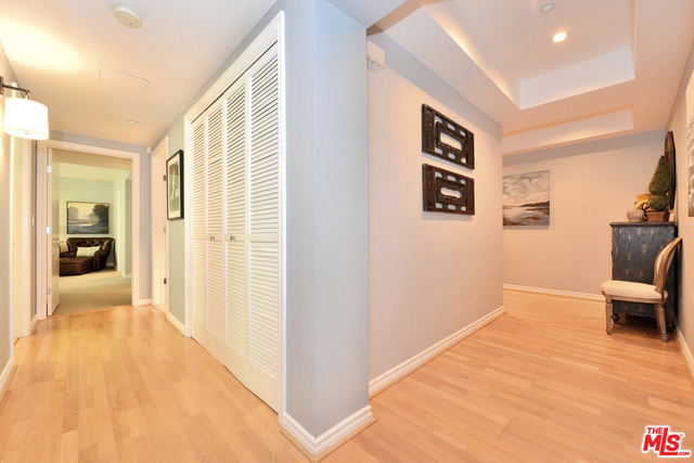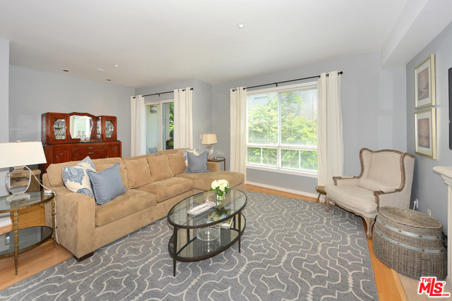 Bright & beautiful 3 bedroom single-level condo in this prime Brentwood neighborhood. Front facing corner unit with private patio, breezes, and view overlooking gorgeous purple flowered Jacaranda trees. Meticulously maintained with immense pride of ownership. Enter to a large foyer with powder room, crown and baseboard molding throughout, recessed lights, wood floors, and very few common walls. High-end kitchen with built-in pantry, expansive open living room/dining room with gas fireplace, two guest bedrooms, full hall guest bathroom, and brand new LG washer & dryer. Oversized master bedroom has walk in closet, en suite bathroom, and its own gas fireplace. Great condo for entertaining. Small clean building, family friendly, 7 guest parking spots, and storage. Built in 2000. Walking distance to Amandine, Bar Food, Bristol Farms, CVS, LiteratiCaf, Hara Sushi, Ralphs, Montana Ave, San Vicente, and more!