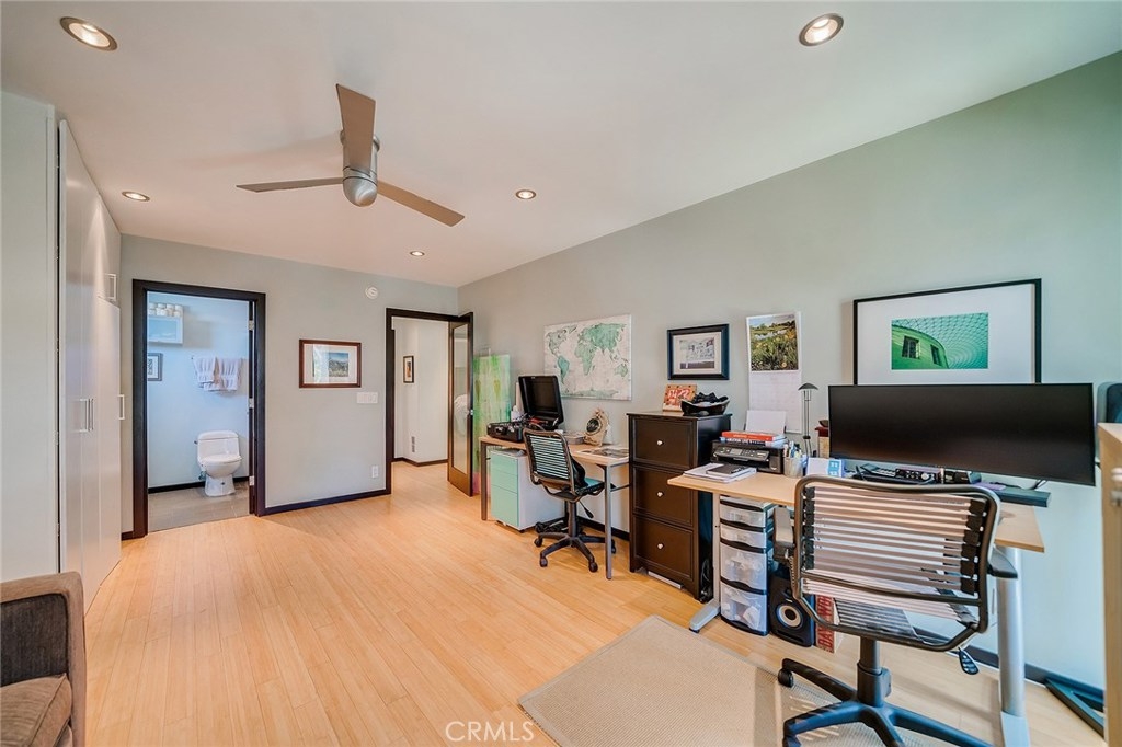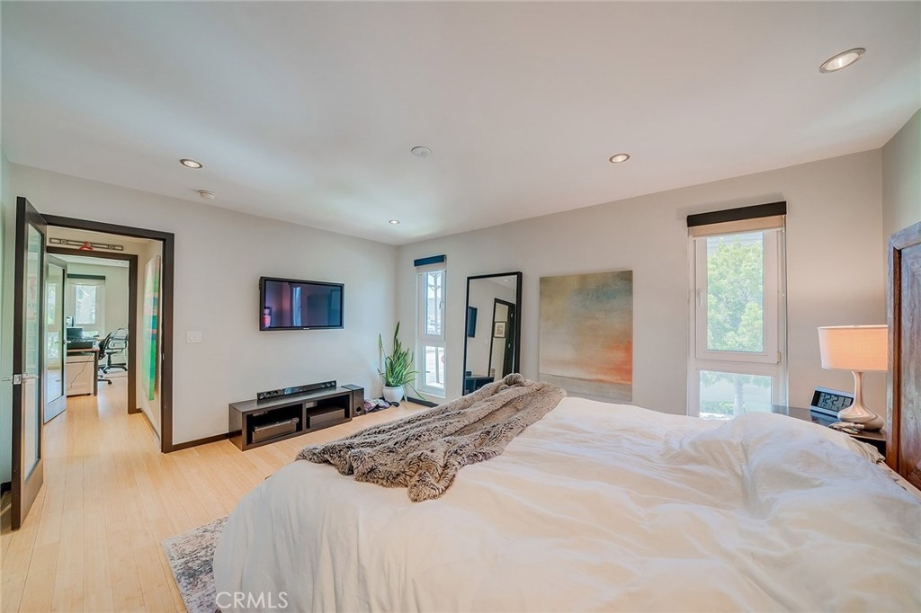 On the corner of one of the most sought after neighborhoods in all of Los Angeles sits this light-filled gem you won't want to miss out on. The walk-ability from this double en-suite haven is truly second to none. When you walk through the front door, you immediately sense the welcoming and open living space that is so thoughtfully laid out. The living and dining room proximity is perfect for winding down after having just cooked a gourmet meal in your updated chef's kitchen. If you're a movie buff or love watching sports on a big screen, the main wall is perfectly situated for a large projection screen. Lucky for you, the surround sound is already wired. So, sit back, relax, and enjoy the comforts of your new home. Recessed lighting throughout really showcases all the beauty this unit possesses. Additionally, accent lighting is perfectly placed around the condo for those who love to showcase their finest pieces of art. With the option to make either bedroom the master, this home truly presents a ton of possibilities for anyone looking to capitalize on a home that won't last long. Finding "home" is more important than ever, so don't miss out on calling this one yours!
