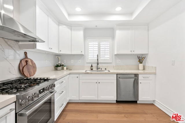 Prime Brentwood Location! This brand new, fully remodeled two-bedroom, two-and-a-half bathroom plus den condo offers a truly turnkey opportunity in the heart of Brentwood. This single-level condo features an updated kitchen with stainless steel appliances and custom cabinetry. The den flows into the expansive, light-filled living room and dining area. From the fireplace, walk through double french doors onto a private patio. The spacious primary suite boasts a fireplace, walk-in closet, remodeled bathroom, and a second private patio. Building amenities include gated entry and covered gated parking. Conveniently located close to the best shops and restaurants of San Vicente Boulevard, Brentwood Country Mart, and UCLA.