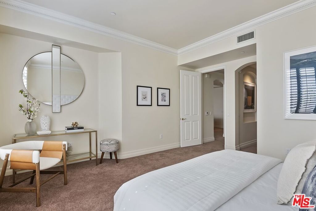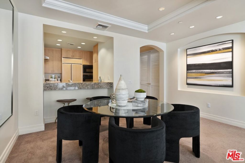 Sophisticated 2 bed/2 bath PENTHOUSE luxury condo in the upscale address of THE WESTGATE building, an atrium style building with concierge, gym, conference room, common patios, fountains & indoor spa. Easy access to unit with elevator directly next to the assigned 2 sidexside parking spaces. Elegant formal entry with hardwood flooring leads to open floor plan with 9ft ceilings filled with natural light. Living room w/ fireplace & large sliding glass window w/ plantation shutters opening to South-facing sun-filled interior atrium greenery. Dining room w/ soffit ceiling opens to kitchen w/ breakfast bar, 5 burner gas range & blt-in microwave & pantry cabinet. Spacious primary suite with large walk-in closet. Luxurious marble-finished master bath w/ dual basins & separate bath and shower & updated recessed lighting. 2nd bedroom w/ double french door entry & ensuite bathroom with full sized shower & recessed lighting. Features include in-unit side-by-side laundry area with storage cabinet above, crown molding throughout & central ac/heat. 2 side x side secured parking, private extra storage room, 1 pet ok (up to 25 lbs) & ample guest parking. Close proximity to all the trendy San Vicente Blvd. retail & restaurants including Alfred's, Whole Foods, Jon & Vinny's, Kreation, Katsuya, Baltaire, A.O.C. & Sunday Brentwood Farmer's Market. Move-in ready!