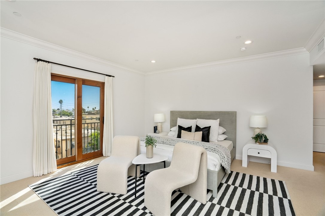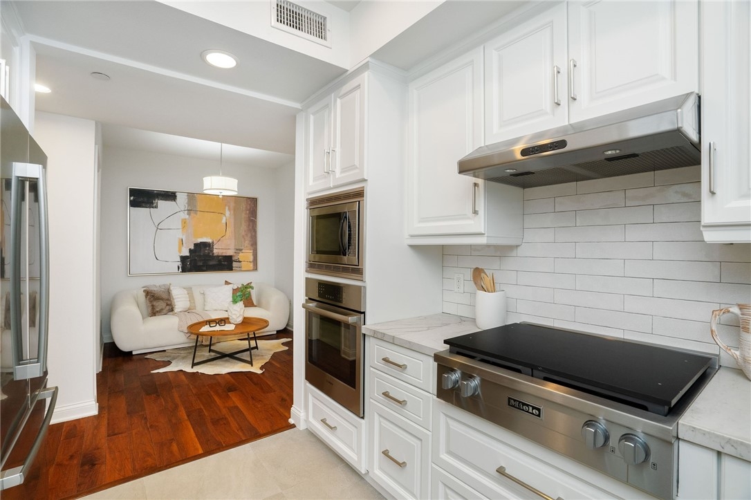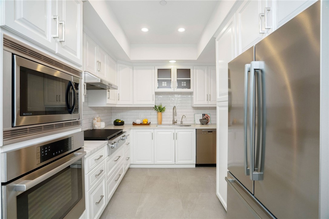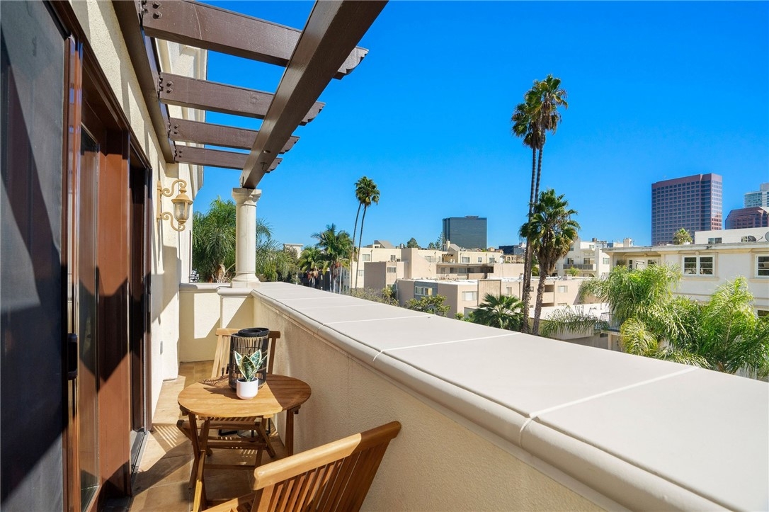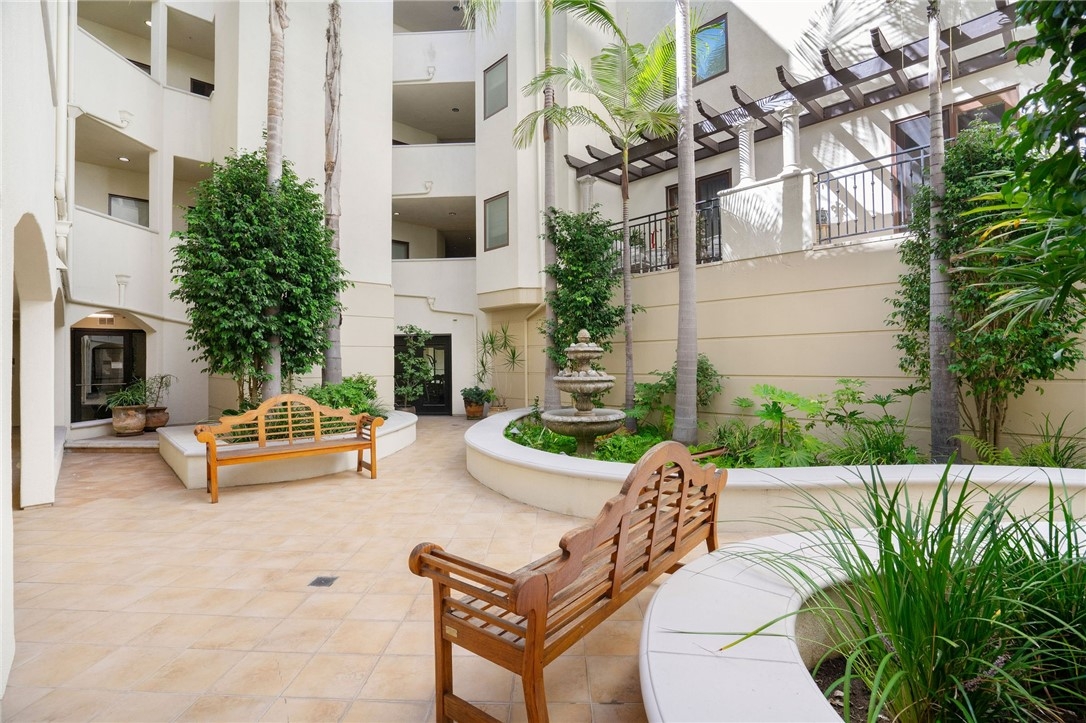This front-facing, turnkey residence is located in The Gardens at Darlington, an urban oasis in the heart of Brentwood. The residence boasts a newly-remodeled gourmet kitchen with high-end Miele and Bosch appliances, sleek quartzite countertops, and stylish porcelain tile. The abundance of natural light, gleaming hardwood floors, crown molding, and recessed lighting add warmth and sophistication throughout. A dedicated laundry area offers convenience, while the primary suite serves as a serene retreat, featuring a custom walk-in closet, Juliet balcony, and a luxurious spa-like tub. This well-maintained building is among the few in Brentwood with daytime concierge service, a state-of-the-art security system, and video surveillance for peace of mind. Residents enjoy access to amenities including a fitness center, guest parking, a sundeck on the roof, conference room, and lush courtyard gardens. HOA dues cover earthquake insurance, and the unit includes two side-by-side parking spaces and a dedicated storage area. Residents enjoy the convenience of being close to Whole Foods, Vicente Foods, and incredible restaurants.