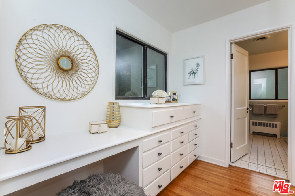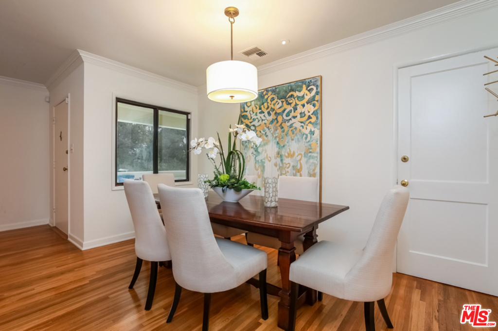 Perfectly located in a magical garden setting in Brentwood, this lovely top floor end-unit is a rare opportunity for a buyer who wants the open feel of a single-family home and the comforts of resort like grounds and amenities, all while being a five minute walk to outdoor cafes, shops and restaurants. At over 1,600sf this spacious, charming, sun-filled unit has 2 bedrooms and 2 full bathrooms, with a generous kitchen overlooking a tranquil courtyard filled with green space and lush gardens, as well as original hardwood floors, central A/C, an area for washer/dryer, tons of closet and storage space, a private 2 car garage and private walk up entry. On over 2 acres, additional complex amenities include a heated saltwater pool, whirlpool hot tub, fitness center, and plentiful guest parking. HOA dues include earthquake insurance, all gas, water and heating. These unique mid-century units rarely come on the market and this is a must see!!