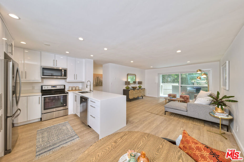 Back on the Market with a serious price change. Sellers are motivated! This exquisitely appointed Brentwood condo offers a very desirable location and underwent a complete renovation in 2018. Absolutely pristine interior and move-in ready. (Condo is not staged now). The appealing open floor plan welcomes you to the spacious living room with a slider to your own private patio w/gate. Updated flooring, windows, doors, and barnyard sliders. Recessed lighting throughout along with a new modern dining room fixture. Features include the beautiful kitchen with quartz countertops & updated appliances. All white, fresh, light & bright. This property boasts a large bedroom, master suite dressing area & walk-in closet. Bathroom has updated sink, fixtures, tub & shower. You'll be surprised at the abundance of closet space. And the new, in-unit, washer & dryer combo stays. Landscaped courtyard with secured entry to your front door completes this exceptional Brentwood residence. Designated covered parking space has direct access to your patio entrance. Classic Brentwood, "of course".