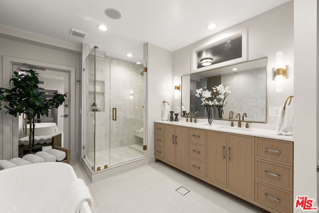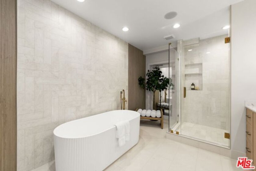 Halston House is a bespoke collection of eight condominium residences right in the heart of Brentwood. All of the residences comprise three bedrooms, a family room and 2.5 bathrooms. Elegantly appointed living spaces include gracious living rooms with wide-plank oak wood flooring, fireplaces, large windows and French doors that allow natural light to pour in. The family rooms offer built-in cabinetry, creating an ideal setting for a media room or office. Gourmet kitchens feature Italian Dolomite countertops with full-height backsplash, custom oak cabinetry, stainless steel appliances, glass-front refrigerators and wine refrigerators. The serene primary bedrooms are complemented by spa-like bathrooms with hand laid herringbone limestone, dual sinks, a separate soaking tub, a walk-in shower, and expansive custom-designed walk-in closets. Additional features include built-in speakers, dedicated power for EV chargers, private package delivery lockers in the lobby and additional large private storage in a locked storage room. Halston House was thoughtfully designed with elegance and privacy as a guiding principle.