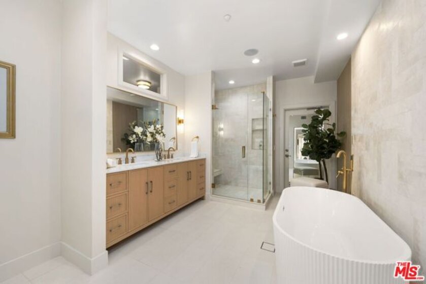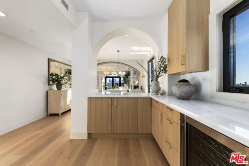 This prime Brentwood penthouse residence is the ultimate in luxury condominium living. The south/west exposure allows natural light to flood in throughout the day and enjoy sensational ocean view sunsets as you're winding down. Halston House is a bespoke collection of eight condominium residences right in the heart of Brentwood. All of the residences comprise three bedrooms, a family room and 2.5 bathrooms. Elegantly appointed living spaces include gracious living rooms with wide-plank oak wood flooring, fireplaces, large windows and French doors that allow natural light to pour in. The family rooms offer built-in cabinetry, creating an ideal setting for a media room or office. Gourmet kitchens feature Italian Dolomite countertops with full-height backsplash, custom oak cabinetry, stainless steel appliances, glass-front refrigerators and wine refrigerators. The serene primary bedrooms are complemented by spa-like bathrooms with hand laid herringbone limestone, dual sinks, a separate soaking tub, a walk-in shower, and expansive custom-designed walk-in closets. Additional features include built-in speakers, dedicated power for EV chargers, private package delivery lockers in the lobby and additional large private storage in a locked storage room. Halston House was thoughtfully designed with elegance and privacy as a guiding principle.