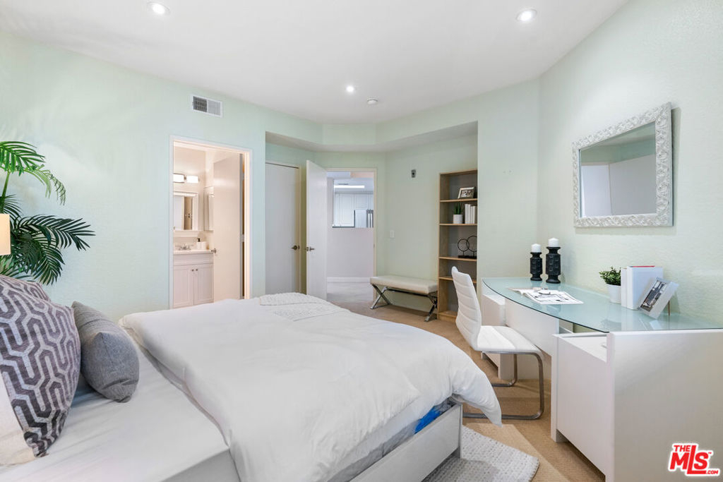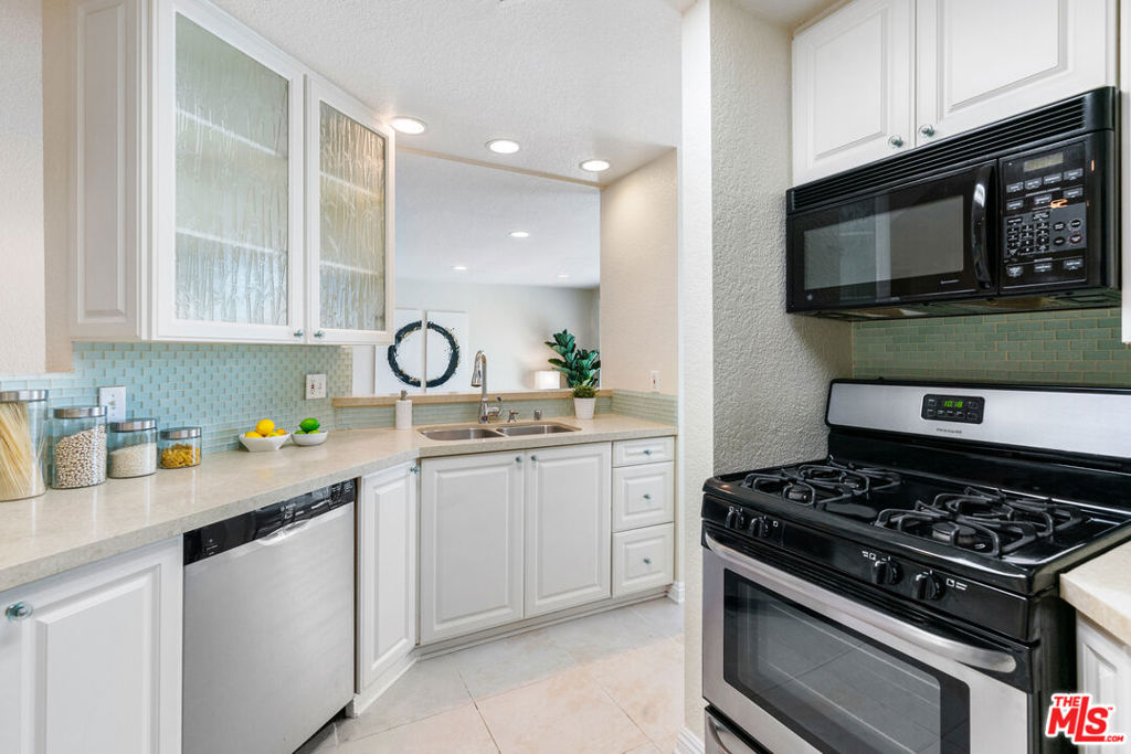Don't miss out on this luxurious condo located in prime Brentwood! This condo has an abundance of natural light featuring two bedrooms with en suite bathrooms and an additional half-bath powder room for guests. The spacious living room includes high ceilings, recessed lighting, custom plantation shutters, wood-grained ceramic tile floors, limestone fireplace, and more! The updated kitchen has stone floors, Tiffany blue tile accents, and stainless steel appliances. The unit also features generous closet space, updated bathrooms, three balconies, and a dining room with views. There is a tandem parking spot with a storage closet underneath the building. The building features plenty of guest parking, fountains, lush palm trees, and a pool located on the building's roof!