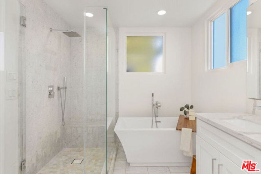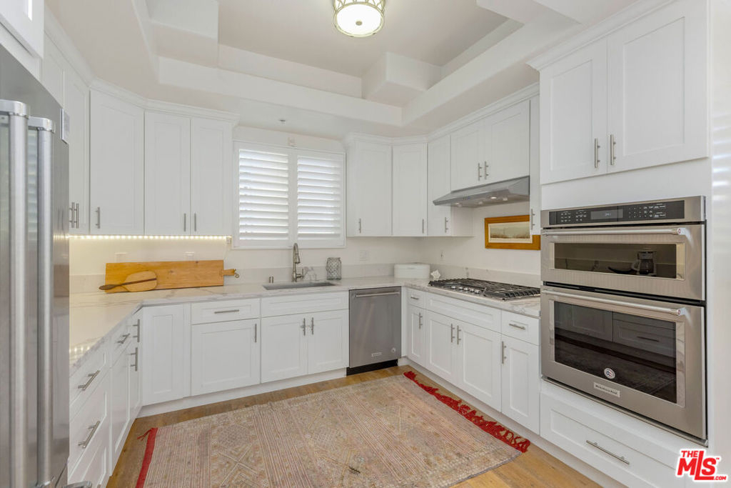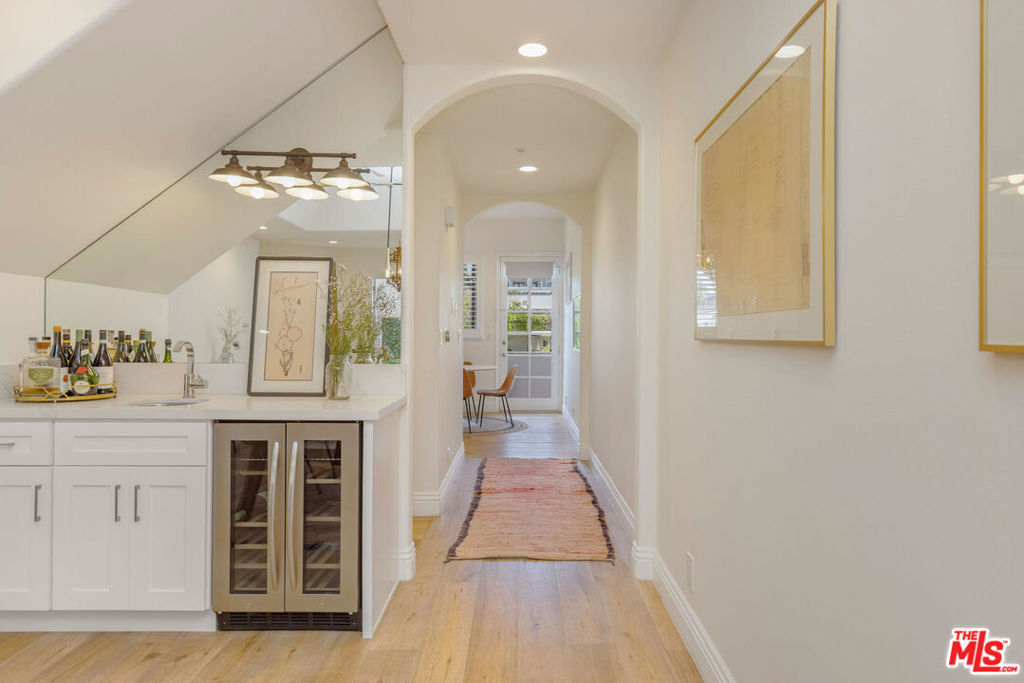 This is your opportunity to own a beautiful Contemporary Mediterranean townhome with a sunlit private terrace in one of Brentwood's most desirable pockets. A hard-to-find blend of privacy, luxury, and location, this special residence welcomes you through double mahogany doors into a generous great room anchored by a fireplace. French doors open to a lush garden terrace for seamless indoor/outdoor living in the heart of the Westside. Entertaining is effortless with a chic wet bar featuring a built-in wine cellar and mirrored backsplash. The updated kitchen is crisp and highly functional with stainless steel appliances, quartz countertops, under-cabinet lighting, abundant storage, and a walk-in pantry. Upstairs, the bedroom level is quiet and refined, led by a serene primary suite with a walk-in closet and spa-inspired bath with soaking tub. Two additional bedrooms...one with a walk-in closet, share a Jack-and-Jill bathroom, ideal for guests, family, or a home office. Wide-plank floors, recessed lighting, in-unit laundry, and gated parking complete the package. Enjoy a flat, easy stroll to San Vicente's cafes, dining, fitness studios, and the Sunday Brentwood Farmers' Market, plus quick access to Brentwood Village, Barrington Rec Center, and nearby parks. Located within highly regarded LAUSD 90049 school options. HOA covers building maintenance, building insurance, water, and common-area electricity.