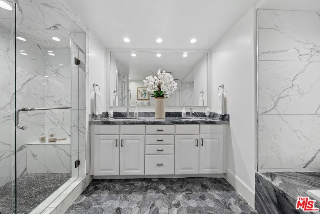Ultra luxurious 2006 Construction, 3 bed/2.5 bath, 2,117 Sq ft townhouse style condo with an incredible approx 429 Sq ft private patio in an ultra high end newer construction building featuring an elevator accessed roofdeck with expansive city views, a large gym, lobby lounge, guest parking, equake insurance, and much more. Located on a tranquil and beautiful tree-lined street in the heart of West LA between Bundy and Saltair, this home features stunning open living spaces with an incredible indoor outdoor flow through the 3 sets of french doors that lead out to the sprawling private patio. The updated modern kitchen boasts striking porcelain countertops and Viking appliances, and opens seamlessly into a large and sophisticated dining room overlooking the patio. Upstairs, the large master bedroom with an oversized walk-in closet offers a peaceful retreat, featuring a luxurious spa-like bathroom with dual vanity, glass shower, separate tub, and marble finishes throughout. And all 3 spacious bedrooms include French doors leading to their own private balconies. Additional perks include Nest automated temperature control, 2 tandem underground parking spaces with an EV charger already installed, as well as guest parking. Residents also have access to a gym and furnished rooftop deck with a BBQ. A rare opportunity to own a stylish, updated condo in an unbeatable location close to Brentwood, Santa Monica, Westwood, and More! Truly checks all the boxes!
