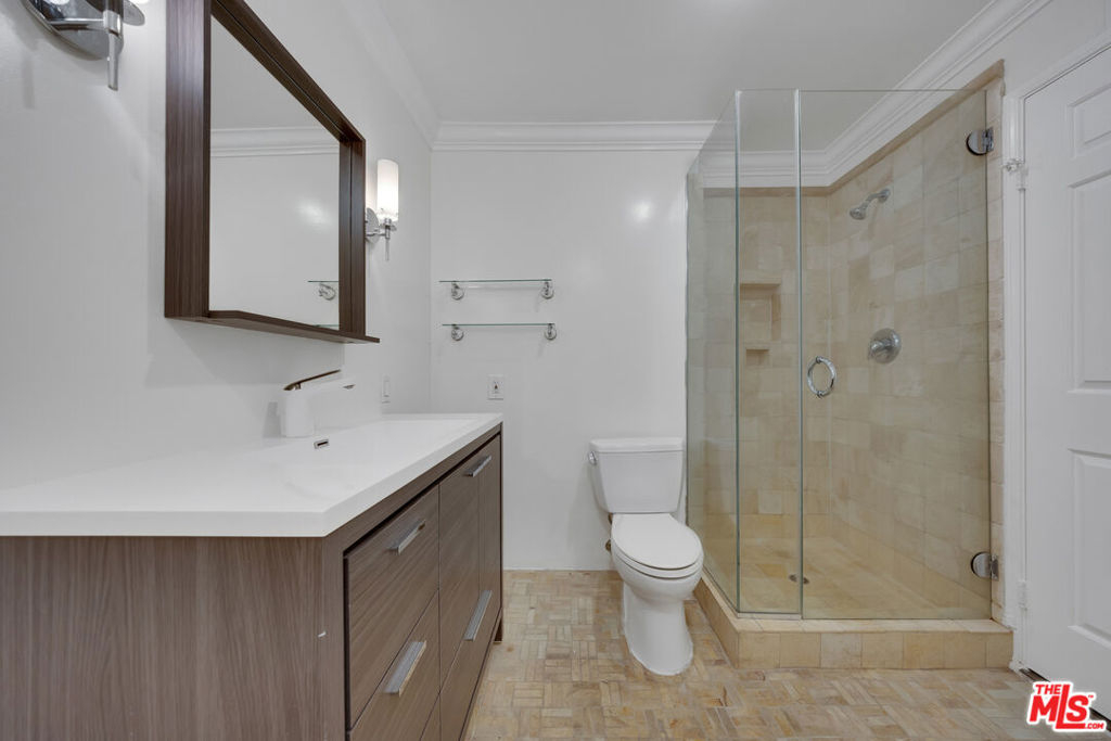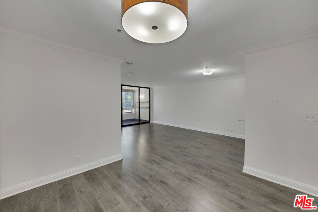 Welcome to this beautifully updated 1-bedroom, 1-bathroom condo spanning 853 sqft in the prestigious Promenade Building, located on the 4th floor. This bright and airy unit features fresh interior paint throughout most of the home, enhancing its modern appeal. The open living area boasts elegant flooring, smooth ceilings, and custom crown molding, creating a sophisticated yet inviting atmosphere. The spacious bedroom offers ample closet space and a serene retreat, while the bathroom showcases tasteful tilework and a sleek modern vanity with a stylish sink. Standout feature is the enclosed patio, thoughtfully transformed into a private study or reading nook, perfect for enjoying the lush green views. The well-appointed kitchen includes a refrigerator, ample counter space, and cabinetry, seamlessly connecting to the living area for easy entertaining. Residents of the Promenade enjoy unparalleled amenities, including a pool, spa, fitness center, sauna, 24/7 security, concierge services, on-site management, fiber internet, and generous guest parking. With one assigned parking space included( #144), convenience is at your fingertips. Perfectly situated across from the Disney Concert Hall, this condo is near by cultural landmarks like The Broad, MOCA, Dorothy Chandler Pavilion, and Ahmanson Theater. Enjoy top dining, Grand Central Market, and easy access to Dodger Stadium, Crypto Arena, major freeways, and the Bunker Hill metro station. Experience luxury living in the heart of Downtown LA! Home is virtually staged.