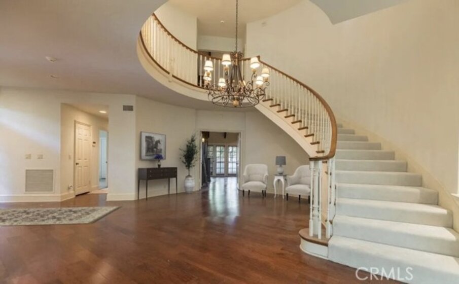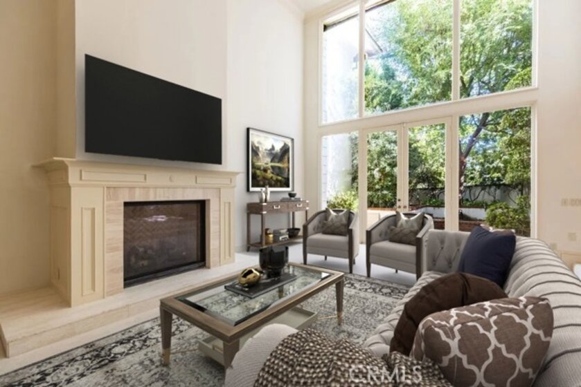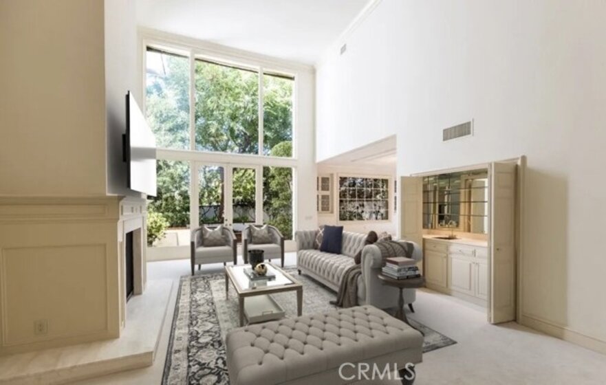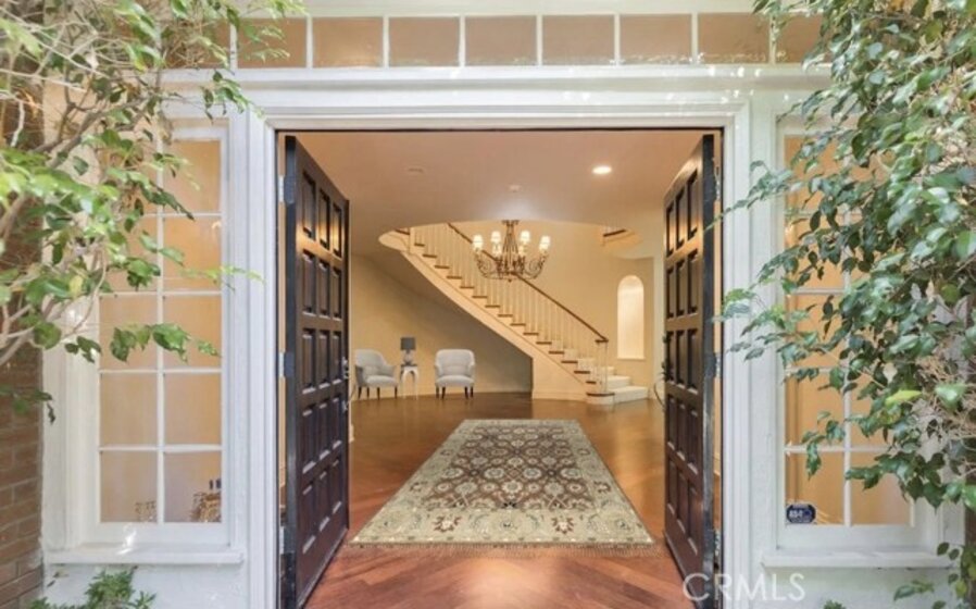 This exceptional 3-bedroom, 4-bathroom 4,018 square foot corner townhome delivers resort-style living in the highly desirable guard-gated Ridge area of Mountain Gate in Brentwood Hills. Located in a very secluded area with 24 hr. security and unmatched serenity. Stanley Kramer, American Film Director, was the original owner of this property set behind a private iron gate with a beautiful courtyard offering complete privacy with only one common wall. This lavish home boasts a formal entry, dramatic staircase, expansive living room with fireplace, wet bar, soaring vaulted ceilings, floor-to-ceiling luminous windows, and elegant French doors displaying a well-manicured wrap-around yard and patios that are perfect for entertaining or quiet relaxation in a zen-like atmosphere with mature trees and koi pond. Spacious eat-in kitchen featuring Miele refrigerator, Wolf dual-convection ovens, Bosch dishwasher, two walk-in pantries and center island. The kitchen has easy access to the formal dining and living areas. One bedroom with ensuite bathroom is conveniently located on the first floor. Additional highlights include a library with fireplace and its own private patio, a dedicated laundry room and a double-attached garage with direct access to the home. Upstairs, retreat to an over-sized luxurious primary suite with a sitting area and a private Juliet balcony with tree-lined views. A huge spa-like bath offers a soaking tub, dual vanities, and a separate shower and bidet. Separately located upstairs is a private 2nd bedroom that has easy access to a full bath. The HOA includes community Pool/Spa, Trash Valet, exterior EQ and Fire Insurance as well as roof coverage. You will have the option to join Mountain Gate Country Club that offers golf, tennis, spa and dining. Easy 405 Freeway access, shopping, dining & spectacular hiking trails. Enjoy the tranquil, resort-like lifestyle and make this stunning colonial-style home yours. Call for a private showing.