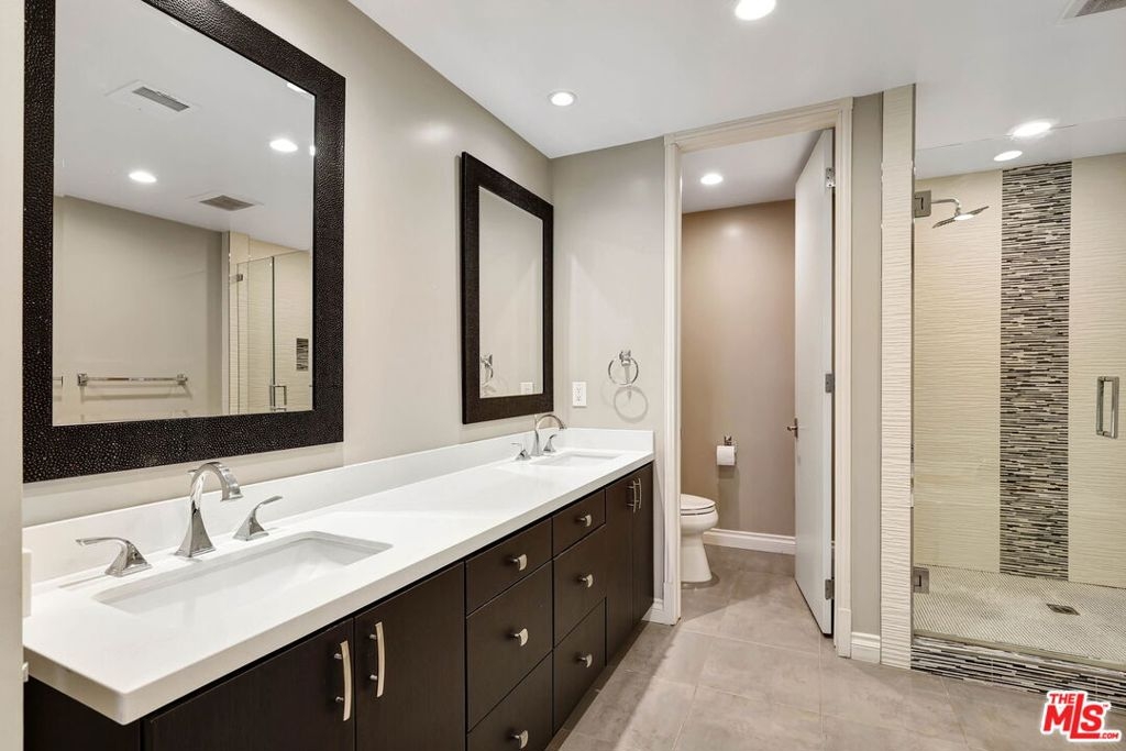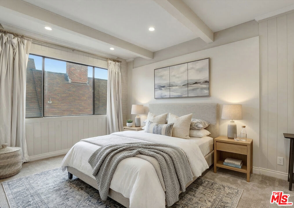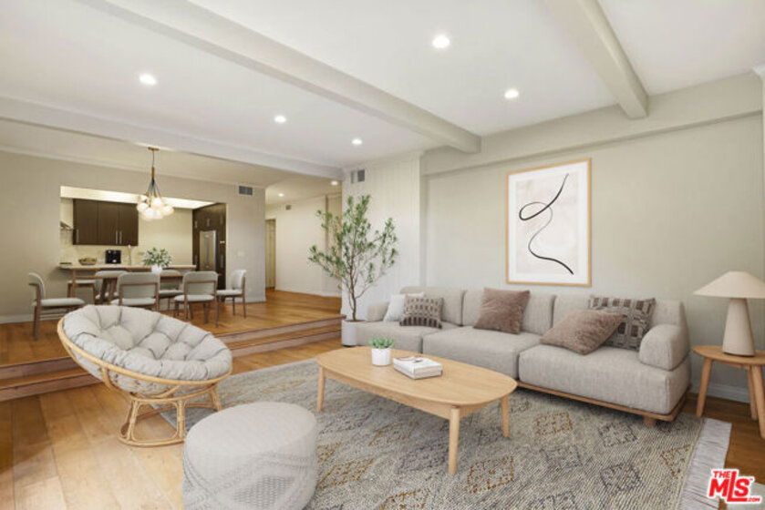 Absolutely beautiful, move in ready condo ideally located in the desirable WestwoodCentury City area. This spacious 1,800 square foot residence features two bedrooms and two bathrooms and has been thoughtfully renovated with modern finishes throughout. The open concept layout faces southwest, filling the home with natural light and refreshing breezes. Bright living spaces feature high wood beam ceilings, European white oak flooring, and recessed lighting that enhance the airy feel of the home. The updated kitchen flows seamlessly into the main living areas and includes stainless steel appliances, extensive custom cabinetry, quartz countertops, and a convenient wet bar perfect for entertaining. The step down living room centers around a cozy fireplace, creating a warm and inviting gathering space. The generous primary suite offers custom dual closets and a dedicated vanity area that leads to a beautifully updated bathroom with a large soaking tub and a spacious separate shower. The second bedroom is also generously sized and filled with natural light, featuring beautiful built ins ready to accommodate your design vision. Additional features include central air conditioning and heating, an in unit washer and dryer, and French style windows that open to a peaceful private balcony. The unit also includes two individual parking spaces, not tandem. Community amenities include secure gated parking, a heated swimming pool, sauna, and gym. Ideally located near shopping, dining, and entertainment, with convenient access to Century City, Beverly Hills, UCLA, and the Westfield Century City. Enjoy comfortable city living in one of Los Angeles' most sought after neighborhoods.