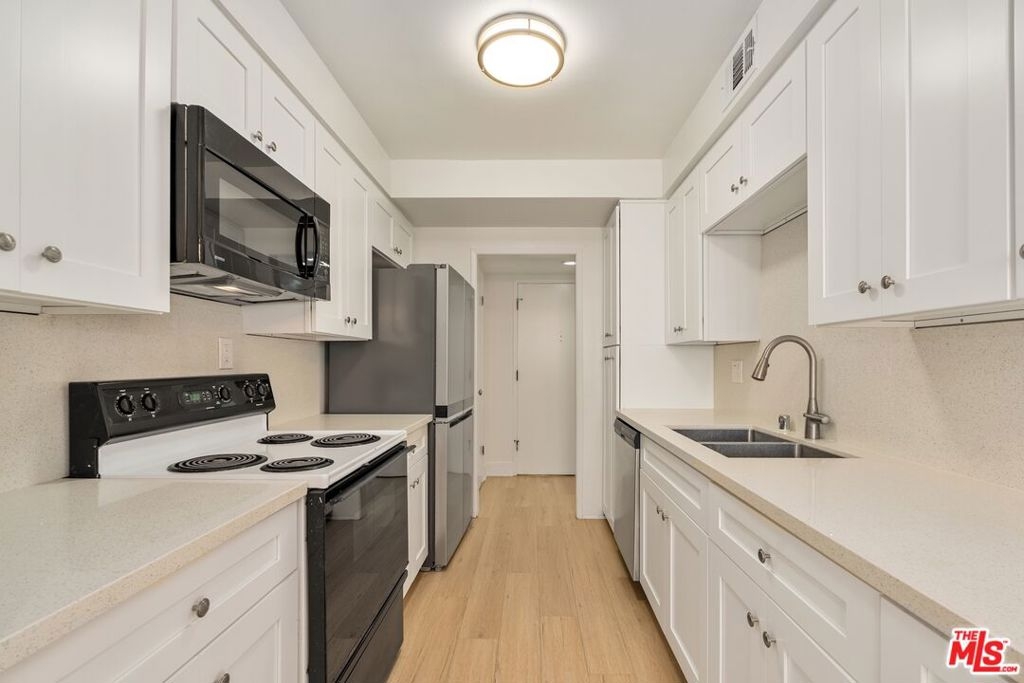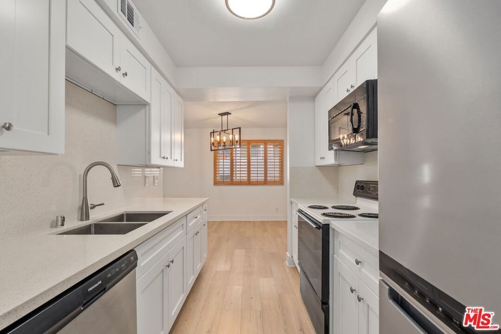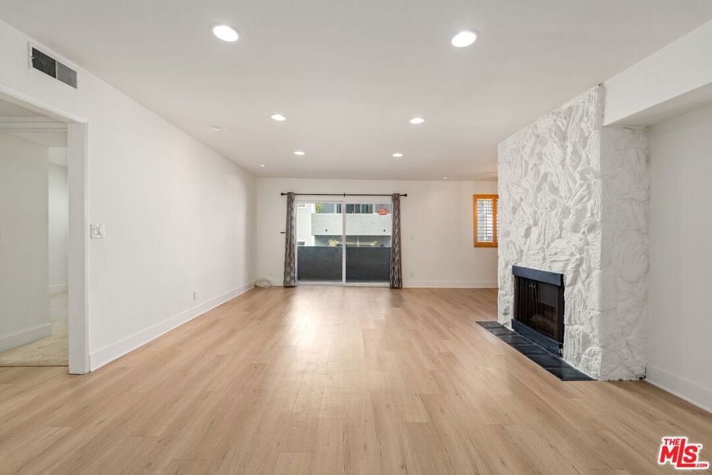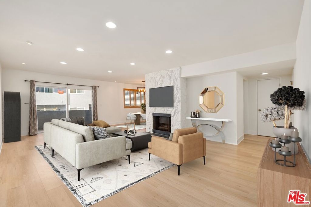 Introducing Brentwood-Adjacent WLA gorgeous 2+2 remodeled condo. Spacious and light-filled residence blends classic charm with modern updates. The updated kitchen features newer cabinets, a sleek quartz countertop, a modern faucet and premium large-plank vinyl wood flooring, making it both stylish and functional. The open and airy living room includes a cozy fireplace and sliding glass doors that leads to a private balcony overlooking community pool - ideal for relaxing or enjoying indoor-outdoor living. This unit offers generous room size and a practical layout with brand new carpeting in both bedrooms. Newly installed bathroom vanity & faucets. Interior freshly painted. Central AC & Heat. Two assigned tandem parking spaces with storage cabinets in the gated community garage. HOA dues include water & earthquake insurance. Amenities includes elevator, trash chutes, community laundry rooms in each floor, pool, a large patio/courtyard area and a gym on the 1st level. Centrally located near UCLA, Santa Monica, shops, dining, and major Westside destinations, this condo is a wonderful place to call home. Fireplace is decretive. Easy to show.
