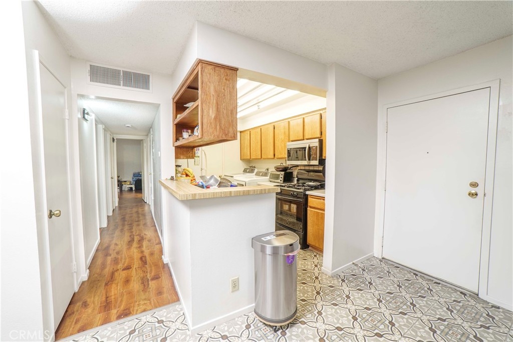 Welcome to this home-style condo that's situated on the first floor of a quiet, gated community in the heart of Los Angeles. This unit makes it a great starter home, perfect for young couples or professionals. The open floor plan features a living, a formal dining room next to the kitchen equipped with appliances, and countertops. A sliding glass door leads out to a spacious private patio. There are 3 generously sized bedrooms and 2 bathrooms with the primary boasting a large walk-in closet and direct access to the tastefully bathroom. Additionally, there are in-unit laundry hookups in the kitchen and two tandem parking spots in the secured underground garage very close to the parking area. Community amenities include a pool/spa, BBQ areas, grassy lawns, and an additional community laundry room. HOA dues include water/trash and on-site maintenance is available. Conveniently located in Downtown LA with easy access to the 110/10 freeways and just a short walk to restaurants, shopping, and entertainment like LA Live and Crypto.com Arena.