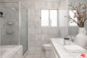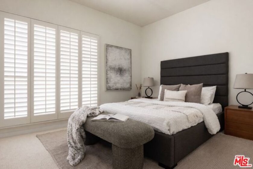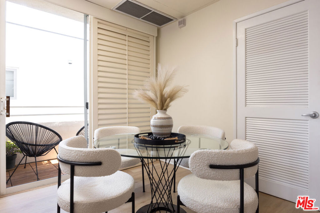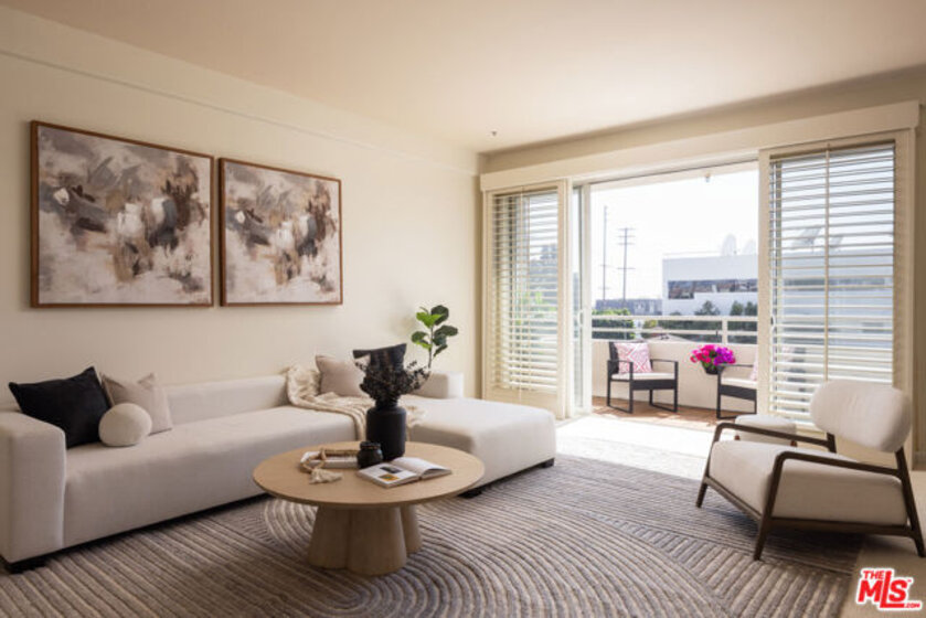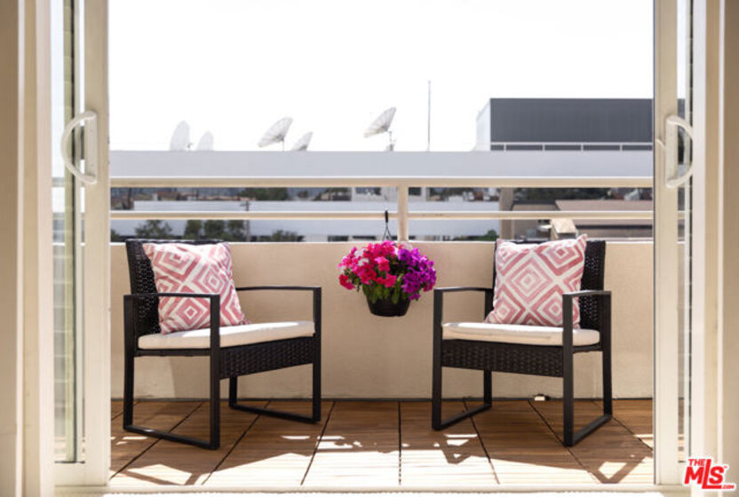 Top-floor penthouse condo with three private balconies and beautiful natural light throughout. As a front-facing unit with no one above, it feels open, bright, and private from the moment you walk in. The living room is spacious and comfortable, centered around a fireplace and opening directly to a balcony through large sliding glass doors. It's a space that works just as well for everyday living as it does for entertaining. Plantation shutters throughout add a clean, finished look while still allowing for great light. The layout flows naturally from the living and dining areas into the kitchen, which offers granite countertops, ample cabinetry, a breakfast bar, and a separate breakfast nook. In-unit laundry is conveniently tucked inside, making day-to-day living easy. The primary bedroom feels private and well-sized, with direct access to its own balcony, a walk-in closet, and a bathroom with dual vanities, a soaking tub, and a separate shower. The second bedroom gets great natural light and works well for guests, a home office, or flexible use. Located in a well-maintained building on a cul-de-sac, just moments from Westwood Village, UCLA, shopping, dining, and easy access to the 405.