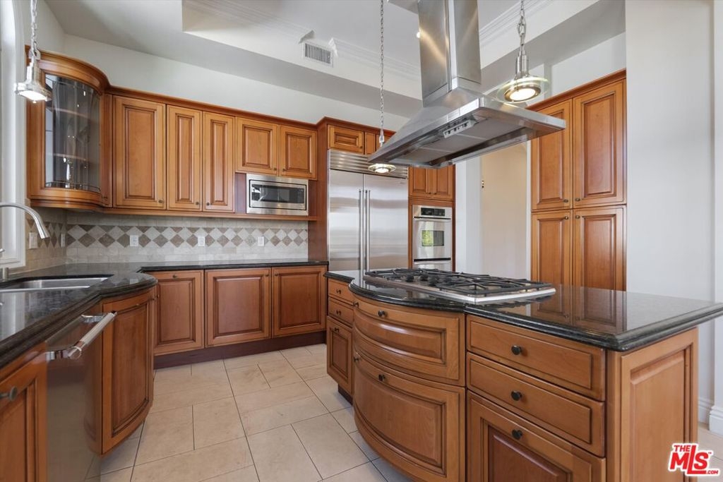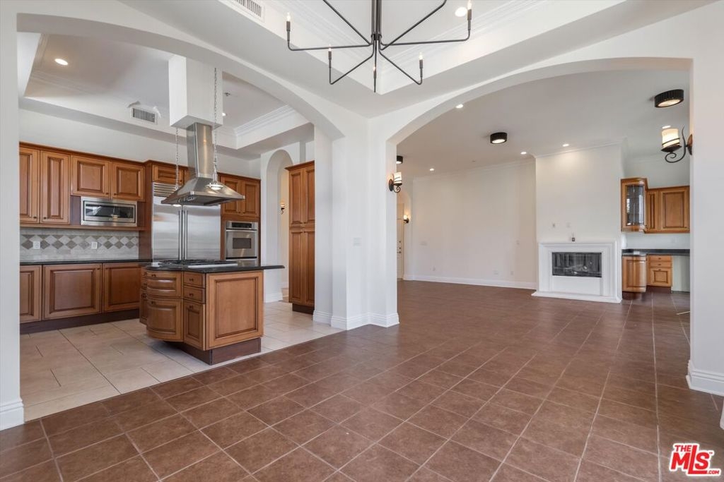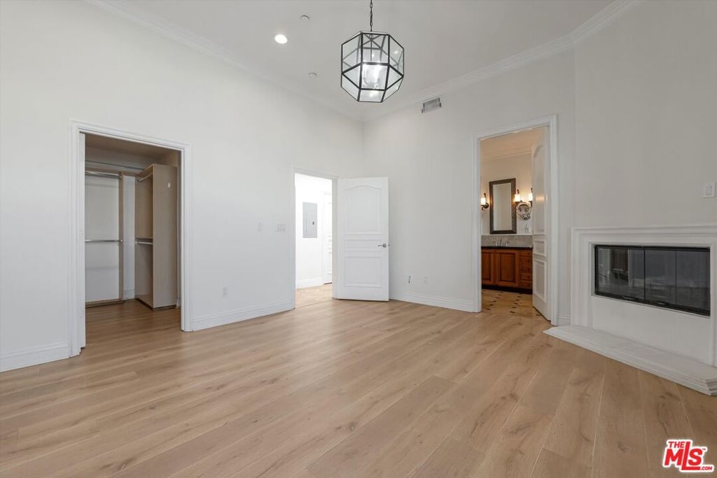 Discover this inviting front-facing penthouse, thoughtfully designed on a single level with soaring high ceilings and an abundance of natural light and only one common wall. Nestled on a picturesque, tree-lined street in Westwood, this home is on close proximity of vibrant shops and restaurants. Located in a boutique seven-unit building with elevator access, constructed in 2005, the residence offers both exclusivity and convenience. Step into the spacious living room, where a cozy gas starter fireplace sets the perfect ambiance for relaxing evenings or entertaining guests. For added comfort, a second fireplace graces the primary suite, creating a tranquil retreat within your own home. The open layout seamlessly connects the living and dining areas, offering a welcoming flow for everyday living. Three elegant French doors open from the dining and living room area to the balcony, providing an effortless transition for indoor-outdoor entertaining. The chef's kitchen stands out with a generous island featuring a cooktop and stainless steel vent hood, ideal for meal preparation and casual gatherings. Enjoy premium stainless-steel appliances, including a newer oversized coveted Subzero refrigerator, a true differentiator for culinary enthusiasts along with two wall ovens, a newer GE microwave and Thermador dishwasher, and a spacious pantry for all your storage needs. Both bedrooms are thoughtfully appointed with ensuite baths and custom closets, ensuring privacy and organization. The primary suite boasts a walk-in closet, with a Juliette balcony and its own fireplace, creating a private sanctuary for relaxation and comfort. Enjoy peace of mind with secure entry and two underground parking spaces equipped with a dedicated storage area. Modern conveniences include community EV charging stations a standout feature for eco-conscious home owners offering both sustainability and practicality for your lifestyle. Experience the perfect blend of luxury, comfort, and convenience in this exceptional Westwood penthouse.