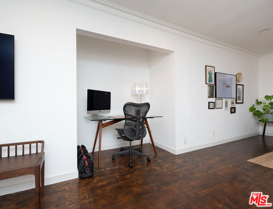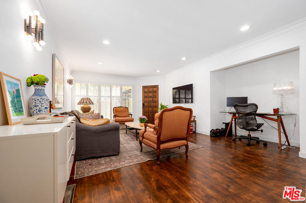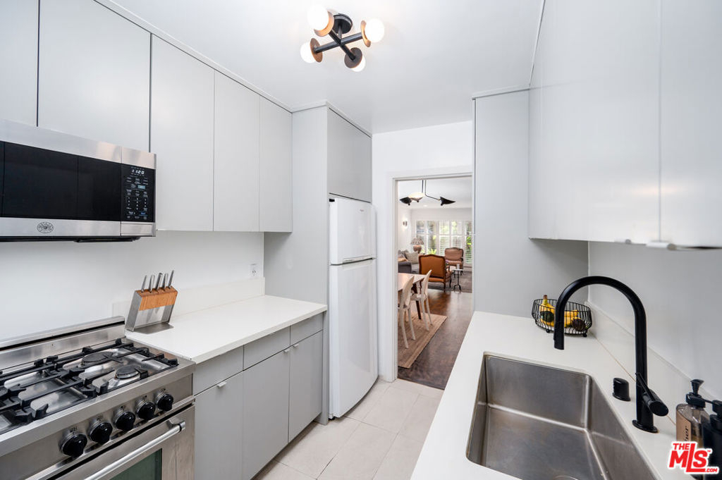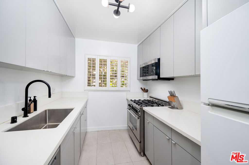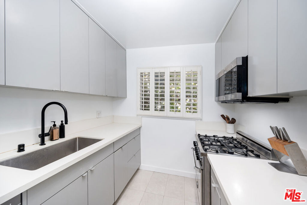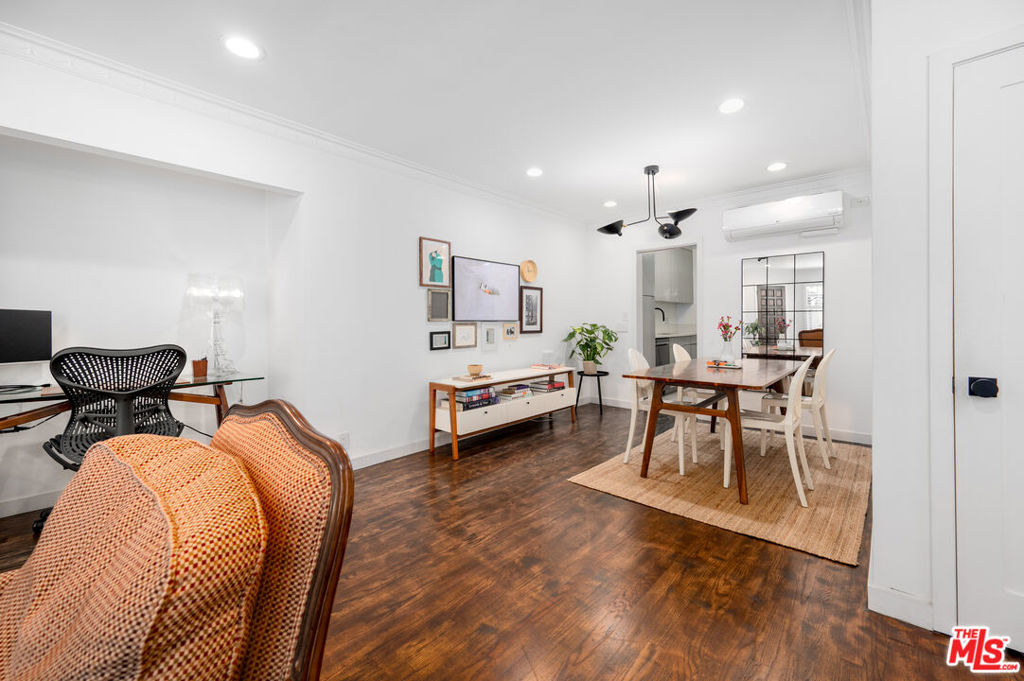Newly upgraded! Welcome to your dream retreat! This delightful one-bedroom, one-bathroom condo boasts character and comfort in a stunning Spanish-style building. Modern kitchen features sleek appliances and ample counter space. Unit boasts new LG Dual zone mini-splits. Customized WFH office space. Step outside to a large, serene pool surrounded by lush landscaping, ideal for relaxing afternoons or social gatherings. Situated in a vibrant neighborhood, you have easy access to all Sunset Strip and West Hollywood offers. This unit includes secure, designated garage parking.