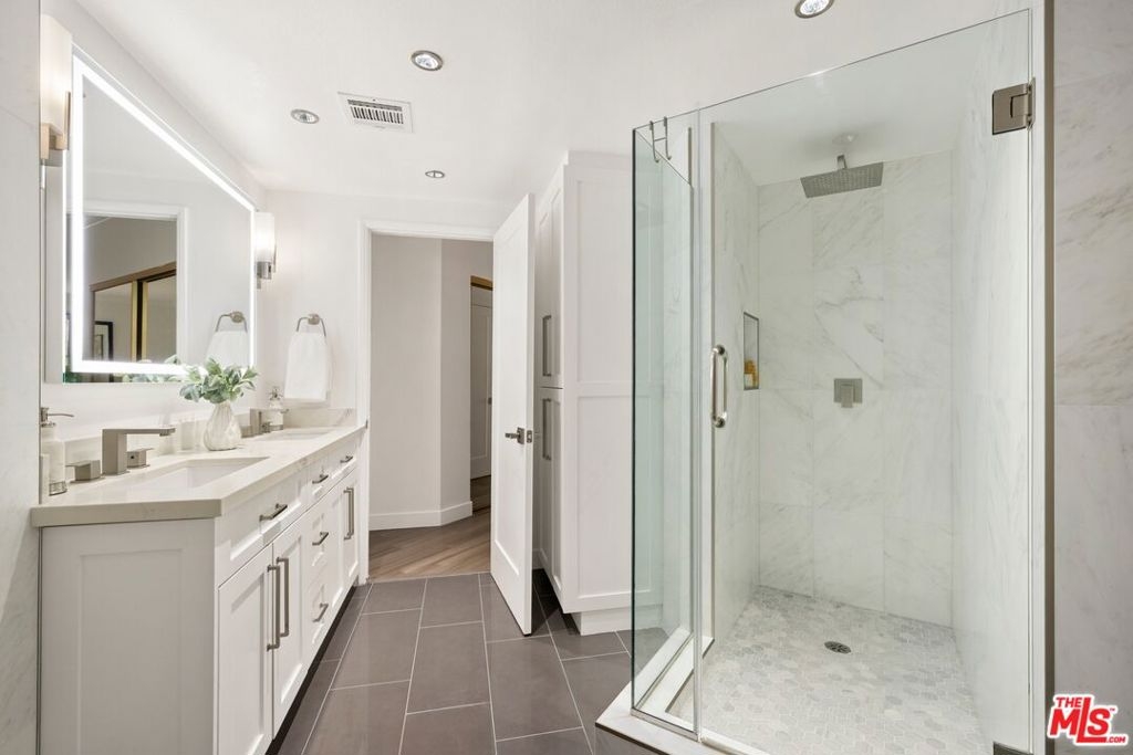 Incredible value awaits! Presenting this bright and elegant, beautifully updated Westwood condo, complete with stylish finishes and materials throughout. Enjoy multiple balconies with treetop views, each accessed by the living, dining, and primary. In the living room, discover spaces awash in light, a wood-burning fireplace with traditional mantle, and wet bar adjacent to the formal dining room. The kitchen is expertly appointed with quartz countertops and backsplash, a farm sink, and top-notch appliances including warming drawer and wine refrigerator. The spacious primary opens to a private balcony and includes an en-suite bath with dual-sink vanity, an abundance of cabinetry, and separate soaking tub and rainwater shower. The walk-in closet contains custom built-ins for maximizing use of space. The secondary bedroom and bath are also updated with modern finishes, including marble-lined walls and showers in all bathrooms, and in-unit laundry features side-by-side washer and dryer. Building amenities and conveniences include secured, controlled-access subterranean garage with two tandem parking spots. Experience a fresh, coveted lifestyle in a central location, convenient to UCLA, freeways, Santa Monica, Sawtelle, Westfield Century City, Westwood Village, and the many wonderful entertainment, dining, and shopping options of the Westside.