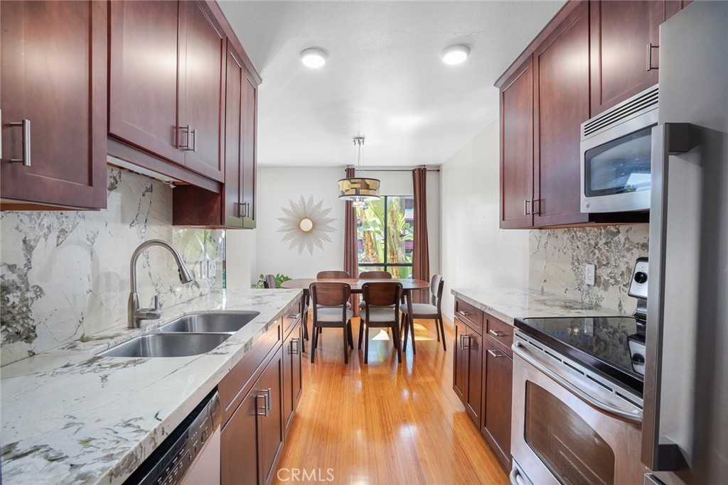 On one of the most desired, palm-tree lined streets in Hollywood, this TURNKEY 1bd/1ba, 2nd floor condo features: •NATURAL LIGHT; •Rare, SOUND-PROOFING in the ceilings; •FULLY-REMODELED KITCHEN w/lots of counter & cabinet space; •FULLY-REMODELED BATHROOM w/marble tile & separate tub & shower; •LARGE BEDROOM w/walk-in closet & natural daylight; •finished BAMBOO FLOORS; BALCONY w/LUSH, GARDEN-LIKE VIEWS; •LARGER of the 1bd floor plans w/a spacious vibe; •EASY ELEVATOR ACCESS to 2 parking spots (tandem) in the gated garage. The building has 2 fitness centers w/dry saunas, rec room, onsite management and will have a brand new pool & spa once completed. **PHENOMENAL LOCATION: Down the street from the famous Runyon Canyon (hiking) & close to Wattles Garden Park, restaurants, supermarkets, shops, nightlife and the best of Hollywood without having to look for parking! This is a 1-of-a-kind condo, ready for its new owner.