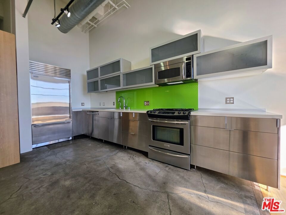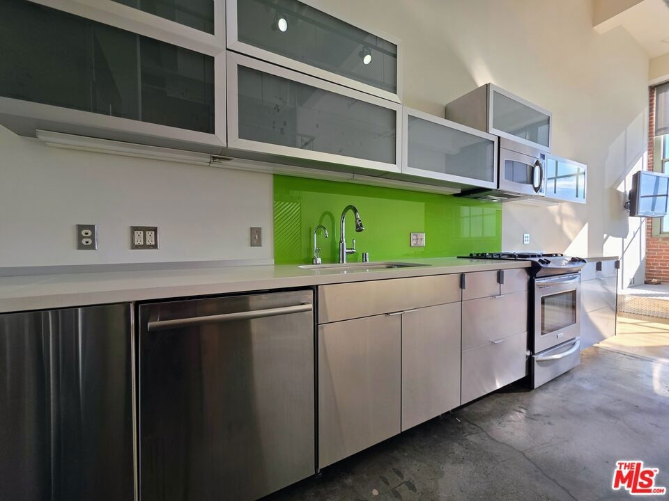 Perched on the 6th level (out of 7) of the iconic Biscuit Company Lofts, this expansive Arts District residence offers volume, light, and limitless potential. Dramatic ceiling height and open sightlines create an inspiring backdrop for those seeking a space that can evolve with their lifestyle whether artistic, professional (live-work), or purely residential. The loft's layout invites customization at every turn. A custom-built mezzanine level introduces valuable additional square footage (not included in the listed public record) and opens the door to multiple design possibilities, including the option to create a private bedroom, office, or studio below while preserving the loft's architectural drama above. This is a loft designed to be shaped, not defined. The Biscuit Lofts is LA Historical Monument #888 and is a Mills Act property. Ownership currently comes with a massive property tax savings (over 80%), adding long-term value to the experience. Residents enjoy access to a curated suite of amenities, including a 75-foot saline resort-style pool, outdoor entertaining areas with fire features and barbecue stations, a dog run, 24-hour security, and a fully equipped fitness center. One assigned underground premium parking space is included. Set in the heart of the Arts District, the building is moments from some of DTLA's most sought-after dining, coffee spots, and cultural destinations, including the private Soho Warehouse. This is a rare opportunity to claim a top-notch loft in a landmark building that is steeped in history, anchored by long-lasting investment appeal, and positioned in the center of DTLA's celebrated creative core.