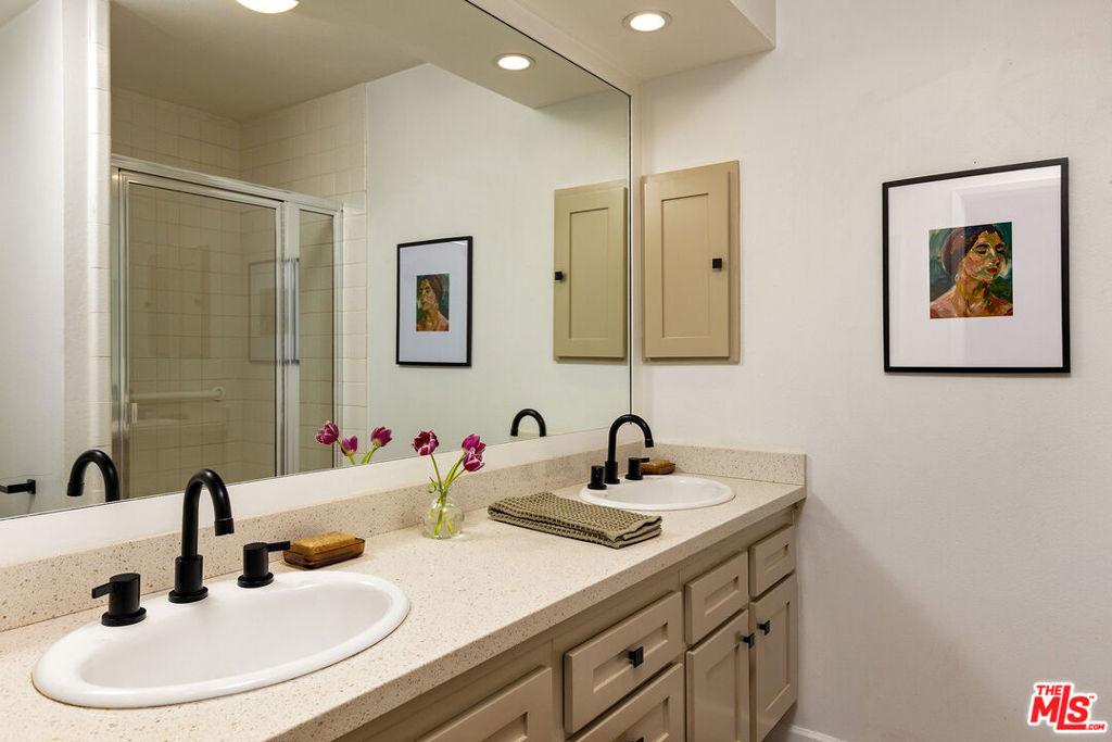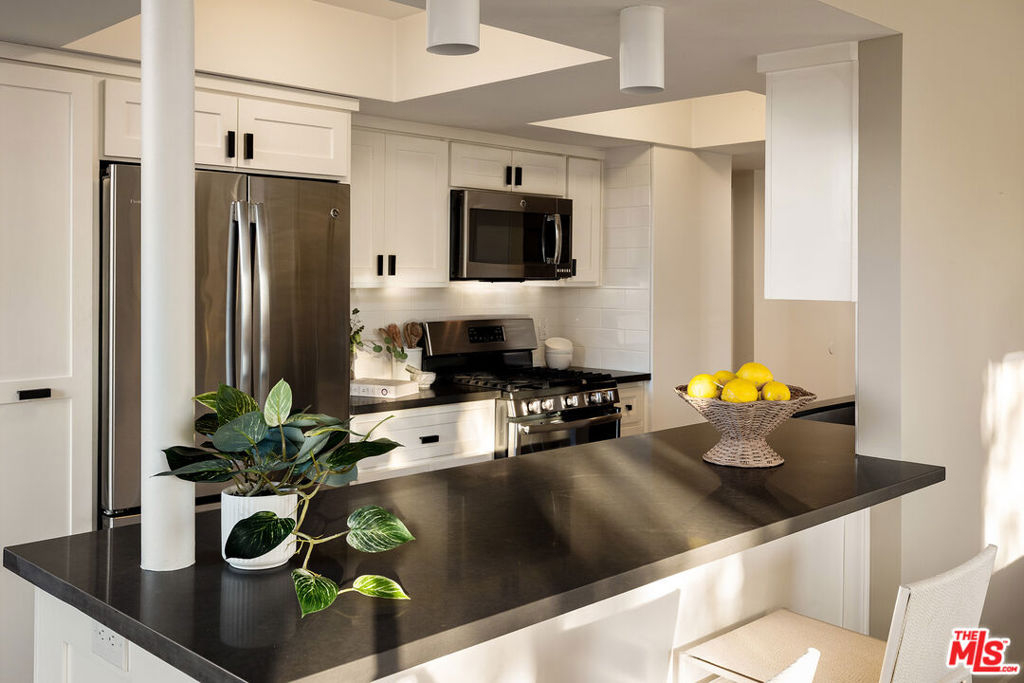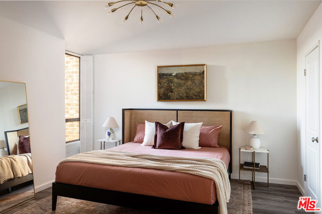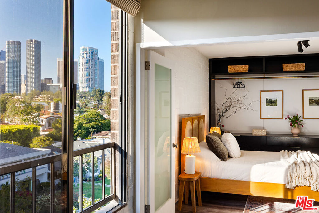 Featured in Architectural Digest, this stylish condo offers elevated design, abundant natural light and sweeping city views. Located on the top floor of a secure building, this 2-bedroom, 2-bathroom corner unit spans 1,247 square feet of thoughtfully designed living space.The open-concept living area is flooded with natural light from oversized windows, showcasing treetop and Century City views. The modern chef's kitchen features quartz countertops, high-end stainless steel appliances, and a kitchen island, blending clean design with everyday functionality. The spacious primary suite includes a walk-in closet, city views, and a well-appointed ensuite bath. The second bedroom features a generous built-in closet, perfect for guests or an at home office.Additional highlights include two gated parking spaces and a private storage unit. This is perfect lock-and-leave style living conveniently located near the shops and restaurants of Westfield Century City, Beverly Hills, as well as both 405 and 10 freeways.