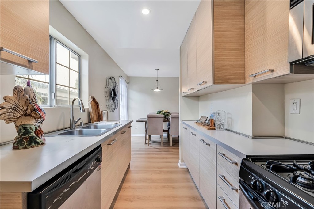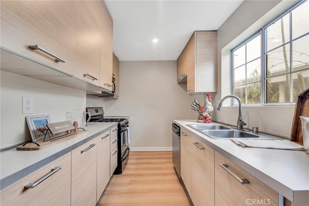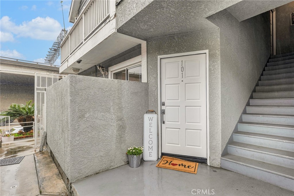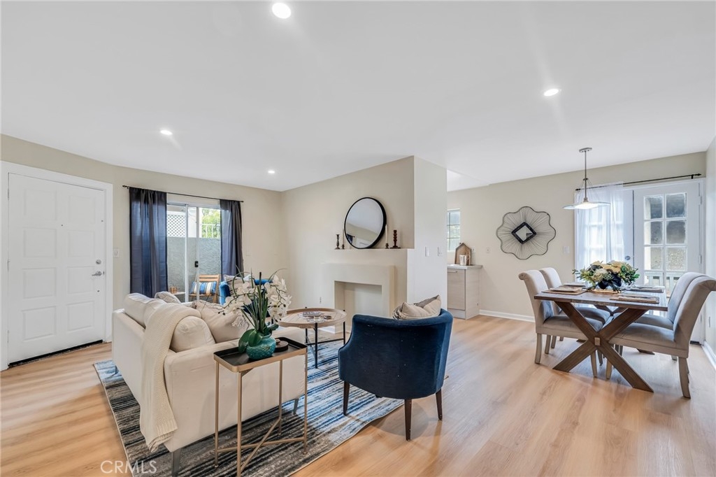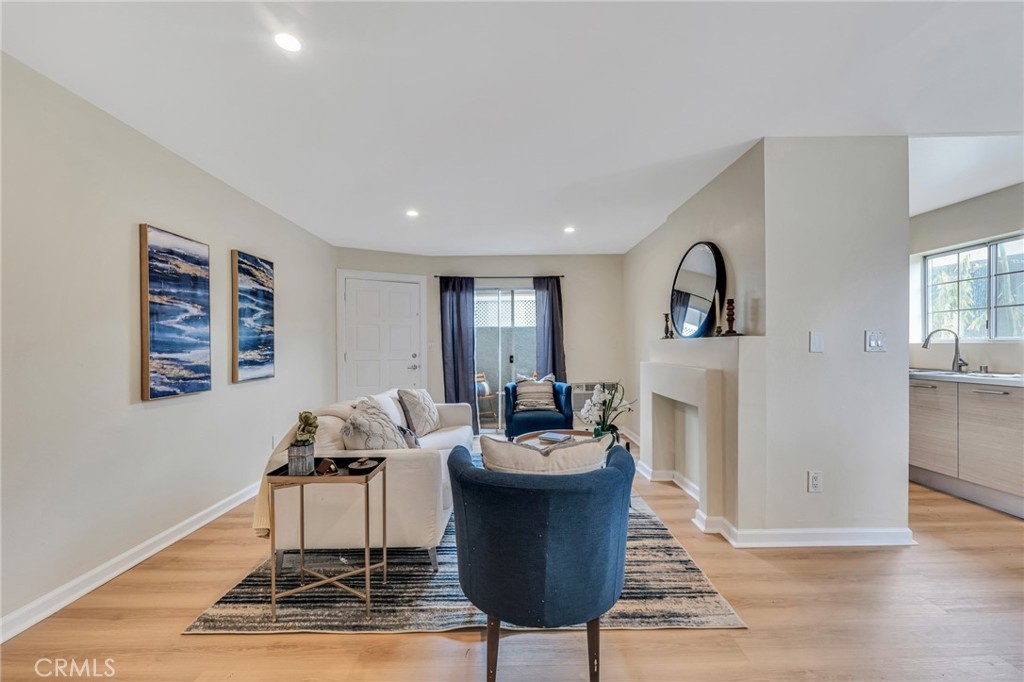 Dont miss the opportunity to live in the heart of West Los Angeles on an eclectic block between Little Tokyo and Venice Beach. This classic two bedroom-2 bath ground floor unit in this charming Cape-Cod-style building. It's many charms include a Juliet balcony, airy ample natural light on this end unit, a decorative fireplace, and lovely architectural details such as luxury vinyl wood floors and designer paint. Private patio off the livingroom, the space feels very spacious and open. Formal dining area between the kitchen and livingroom The remodeled kitchen offers custom cabinets, granite countertops, stainless steel appliances, and good storage while the bathrooms sparkle with decorative tiling, modern fixtures, so spacious and updated. The primary bedroom includes two spacious closets with built-in shelving and frosted glass sliding doors, adding a Japanese design element to complement the neighborhood. The second bedroom provides flex space for office, den, guest room, or home gym. This lovely end unit is close proximity to the rich cultural expanse of Los Angeles, a Metro station, UCLA and freeway access. 2 Subterranean parking spaces and laundry facilities. LOW H0A'S, only 8 units. HURRY this won't last long.