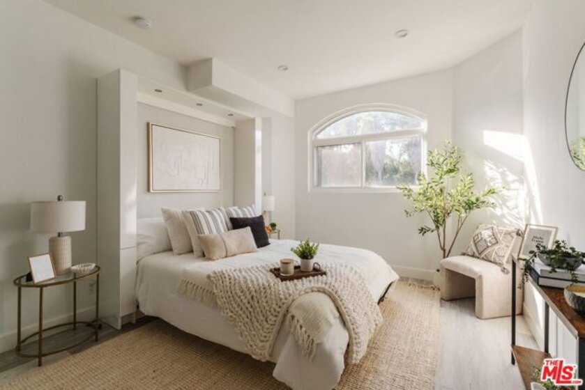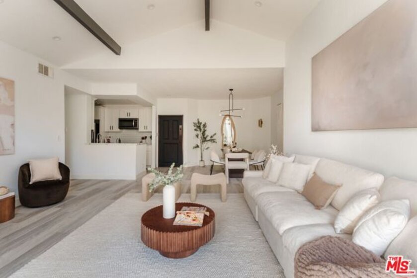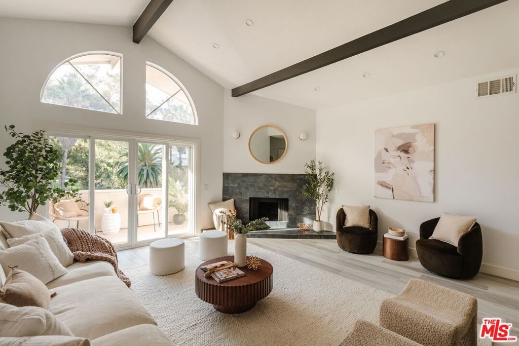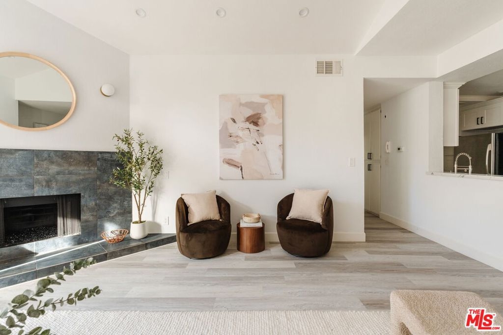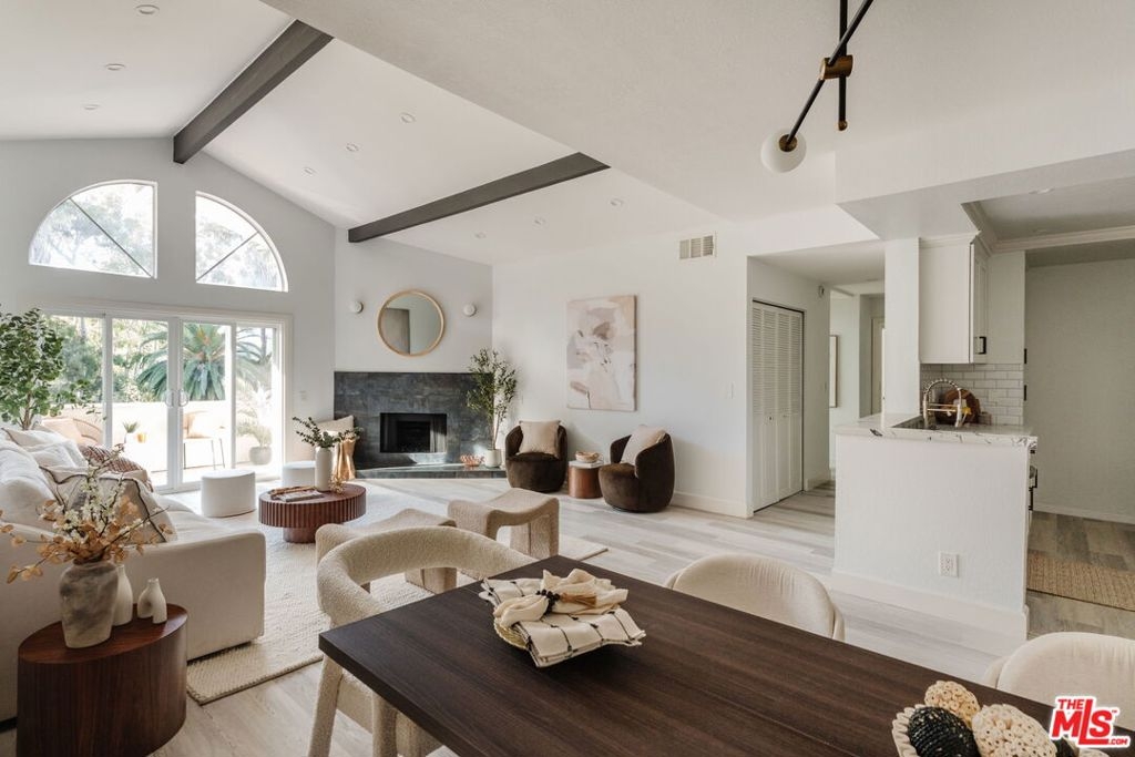 Perched on the top floor, this fully updated penthouse lives like a true escape in the Hollywood Hills, with the sky as your only upstairs neighbor. Nearly 1,300 square feet of airy, single level living is wrapped in natural light, vaulted ceilings, and an open great room anchored by a gas fireplace that instantly sets the mood for both entertaining and quiet nights at home. Tucked into its own private wing, the primary suite feels like a retreat, complete with a separate balcony, a generous walk in closet, and a spa inspired ensuite with dual vanity. Rare, real world perks seal the deal: a full size in unit washer and dryer, elevator access with no stairs, and two side by side parking spaces in a secure garage. Add the advantage of a low HOA and you get the quintessential Hollywood Hills lifestyle without the usual overhead. From here you are minutes to Universal, Warner Bros, and Burbank, plus easy access to iconic LA days and nights, from the Hollywood Bowl to Lake Hollywood trails, Griffith Park views, and the dining and nightlife of Studio City and Hollywood.