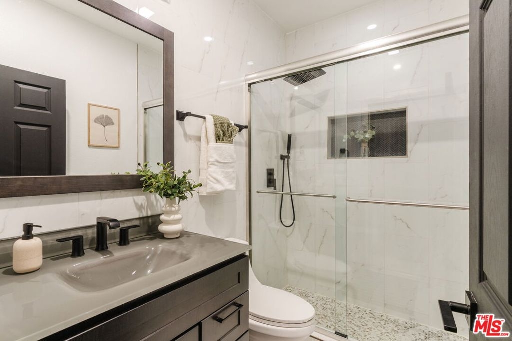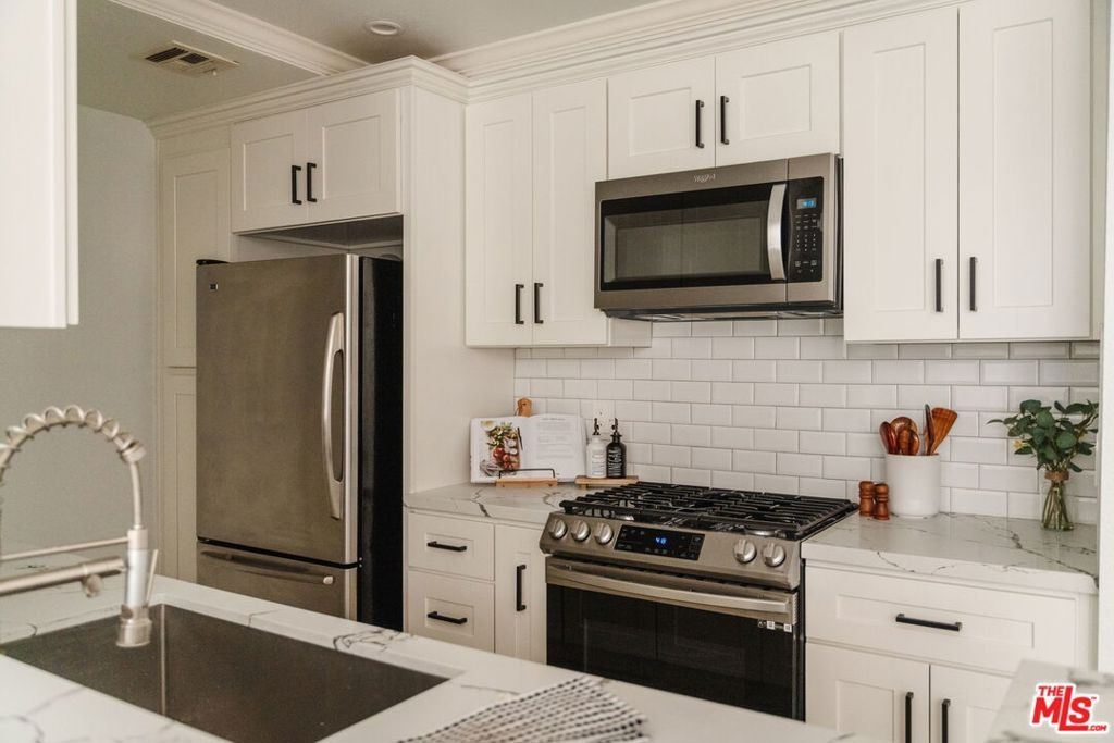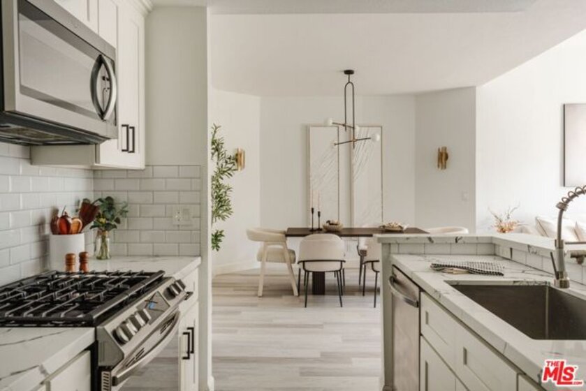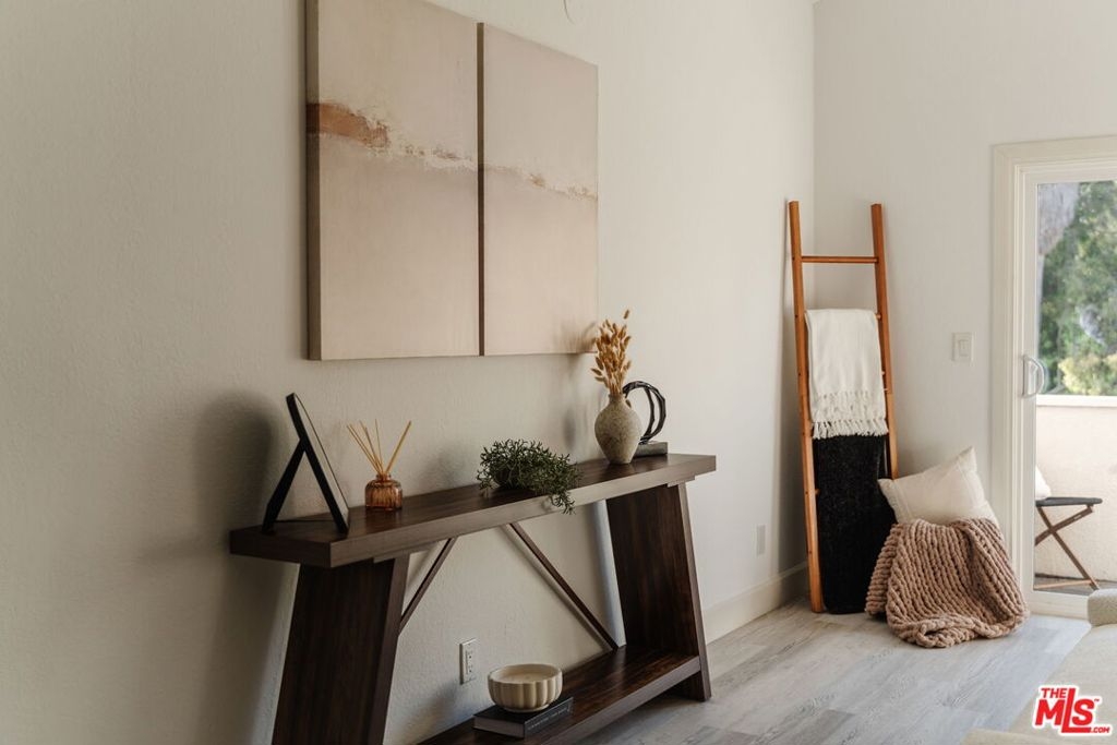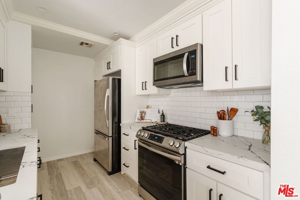 Perched on the top floor, this fully updated penthouse lives like a true escape in the Hollywood Hills, with the sky as your only upstairs neighbor. Nearly 1,300 square feet of airy, single level living is wrapped in natural light, vaulted ceilings, and an open great room anchored by a gas fireplace that instantly sets the mood for both entertaining and quiet nights at home. Tucked into its own private wing, the primary suite feels like a retreat, complete with a separate balcony, a generous walk in closet, and a spa inspired ensuite with dual vanity. Rare, real world perks seal the deal: a full size in unit washer and dryer, elevator access with no stairs, and two side by side parking spaces in a secure garage. Add the advantage of a low HOA and you get the quintessential Hollywood Hills lifestyle without the usual overhead. From here you are minutes to Universal, Warner Bros, and Burbank, plus easy access to iconic LA days and nights, from the Hollywood Bowl to Lake Hollywood trails, Griffith Park views, and the dining and nightlife of Studio City and Hollywood.