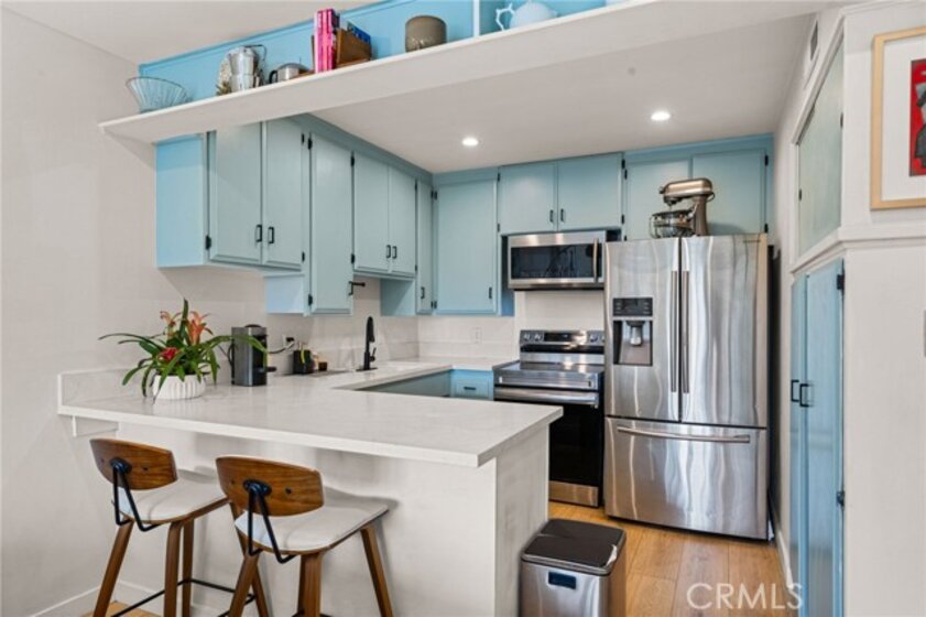 Nestled in the very vibrant center of Los Feliz, this beautifully updated 1-bedroom, 1-bathroom condo offers a rare opportunity to own a home in one of LA’s most desirable neighborhoods with some of the lowest HOA fees in the area! HOA covers all utilities, building maintenance, and insurance.Located on the top floor, this inviting unit boasts many modern upgrades, including new flooring, high-efficiency LED recessed lighting, and a redesigned kitchen featuring stainless steel appliances and brand-new countertops. The spacious living room opens to a generous private balcony with sweeping views of the Verdugo Mountains and Los Feliz Boulevard. Enjoy unmatched convenience with easy access to the I-5 Freeway and Los Feliz Boulevard, placing you just 15 minutes from Glendale, Pasadena, the Valley, Downtown LA, and most of Hollywood. The unit includes a designated garaged parking space and private storage. The building has also been recently upgraded with high-efficiency noise-reducing double-pane windows and copper plumbing throughout. This beautiful condo is located just 3-minute walk to Griffith Park’s trailheads, as well as close proximity to the Vermont Tennis Courts and Griffith Park Golf Courses. This turnkey property is also walking distance from the energy and culinary opportunities of Hilhurst and Vermont Avenues and the multitude of coffee shops, bookstores and boutiques that populate the neighborhood. This turn-key unit is ready for the next owner to enjoy this beautiful and inviting living space while exploring everything this wonderful city has to offer.