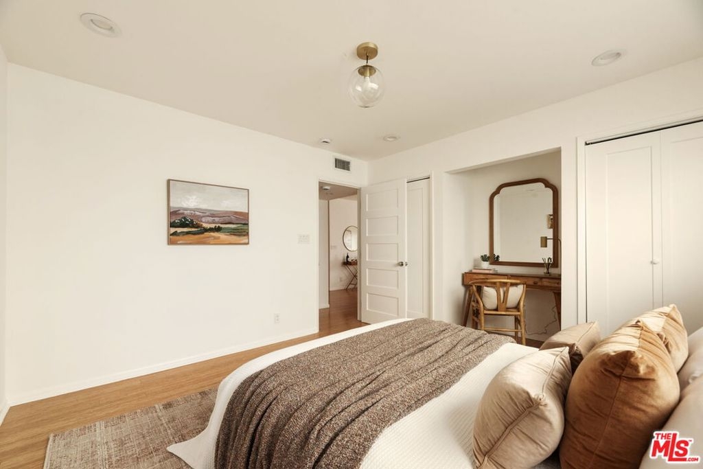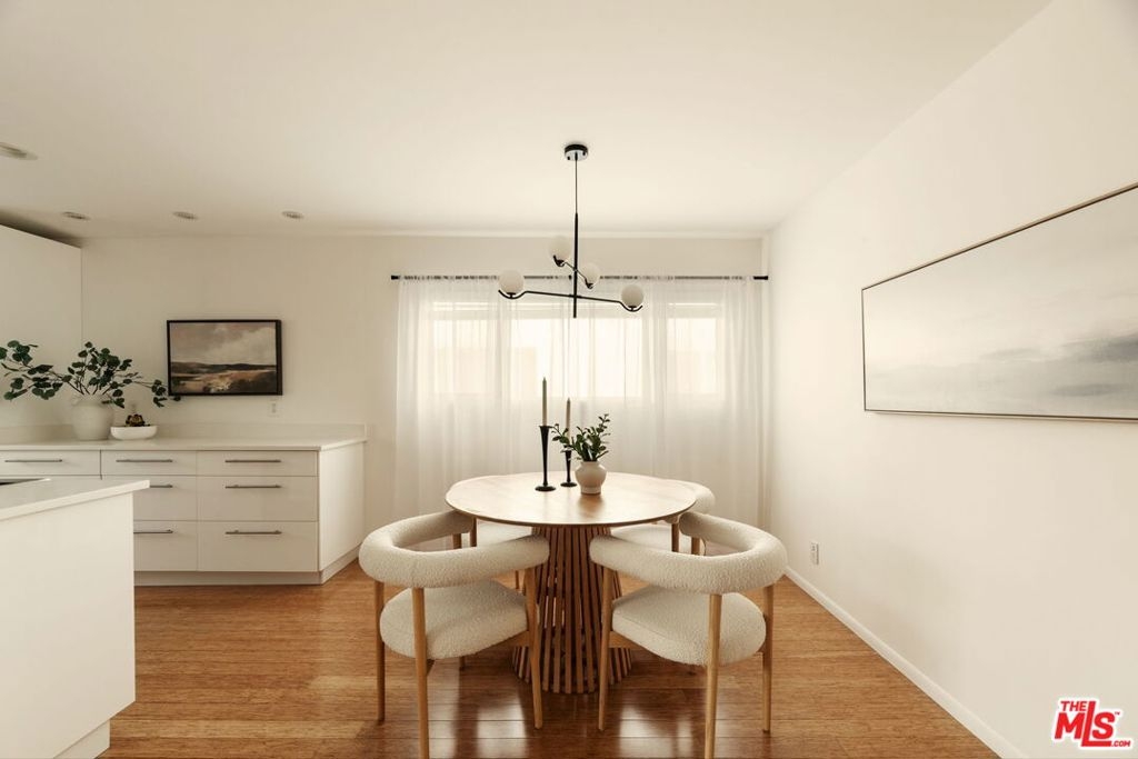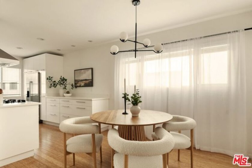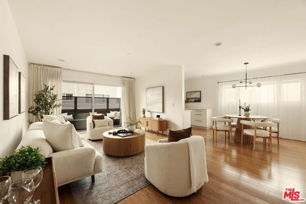 Perched on the top floor and bathed in natural light, this move-in-ready corner residence offers an elevated take on city living in the heart of Koreatown/Hancock Park. A welcoming foyer opens into a bright, generously scaled living space that flows effortlessly to a private balcony. The sleek, updated kitchen is both refined and functional, featuring crisp white quartz countertops, ample cabinetry, and newer appliances designed to support everything from casual meals to inspired cooking. The adjacent dining area creates a natural flow for entertaining, seamlessly connecting the kitchen and living spaces. As a corner unit, the home is lined with windows throughout, filling each room with warmth and light. The primary suite is a calm retreat, complete with a walk-in closet and a modern en-suite bath highlighted by an oversized shower. A versatile second bedroom easily adapts as a guest room or home office, while the secondary bath features a timeless white subway tile design and soaking tub. Bamboo wood flooring runs throughout, complemented by in-unit laundry (with community laundry also available), two parking spaces, and additional storage. Residents enjoy low HOA dues that include access to a pool and spa. Just moments from Larchmont Village, dining, shopping, and transit, this home delivers walkable convenience and effortless Los Angeles living, and an exceptional opportunity to own in a prime location rather than rent.