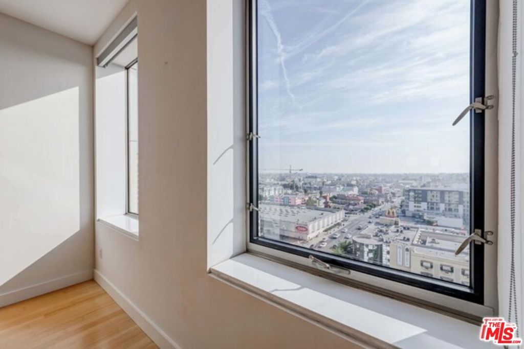 This 10th floor, luxury High-Rise condominium provides sensational city views. 1 bedroom + 1 bath High-rise loft style condo located in the highly desirable area between Korea town and Downtown Los Angeles facing south. Bamboo floors cover the spacious living area and the open kitchen includes sparkling stainless steel appliances accented. The state of the art roof top recreation center includes pool, spa, fitness Center, fire-pit, event lawn, seating coves and barbecue area. Enjoy these amenities with the accompanying panoramic 360 degree view of Los Angeles, Hollywood Hills and the Downtown skyline