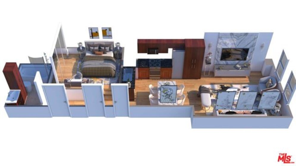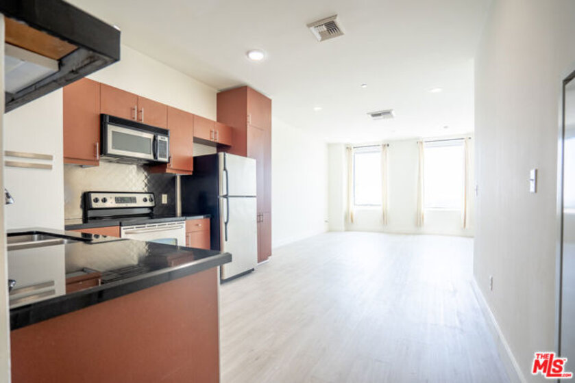Stylish high-rise living in the heart of Koreatown at The Mercury. This bright south-facing one-bedroom loft-style residence features an open floor plan and airy layout designed for modern urban living. A versatile space ideal for a home office adds flexibility for today's work-from-home lifestyle. Recently remodeled, the unit features new flooring, recessed LED lighting, and new appliances, along with the convenience of an in-unit washer and dryer. Residents enjoy resort-style rooftop amenities including a pool, spa, fitness center, and BBQ area, all set against breathtaking 360-degree views of the Los Angeles skyline. Ideally located within walking distance of popular restaurants, shopping, and Metro access, this home offers the perfect blend of comfort, convenience, and vibrant city living.
