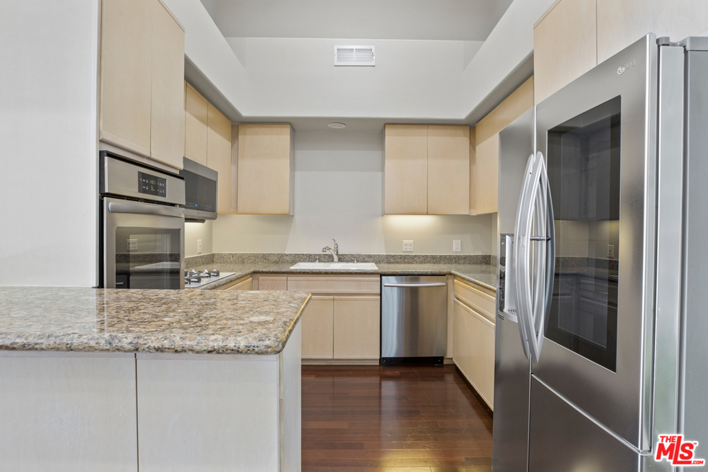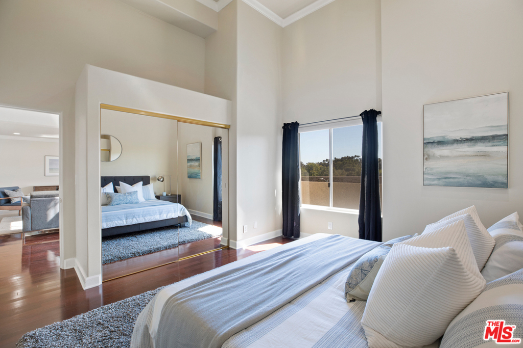 Dramatic and open loft style 2 bedroom unit. Large open living room with fireplace. High ceilings. Kitchen has newer appliances. Master bedroom has 2 closets, one being a walk in. Large roof top deck. Laundry in unit. The building has a pool, large gym, rec room with pool table and a raquetball court. Each unit has its own additional storage room. Parking garage has an area especially for bicycles to be stored. Security building with gated parking. Centrally located close to UCLA, Westwood Village and Brentwood's Town Center.