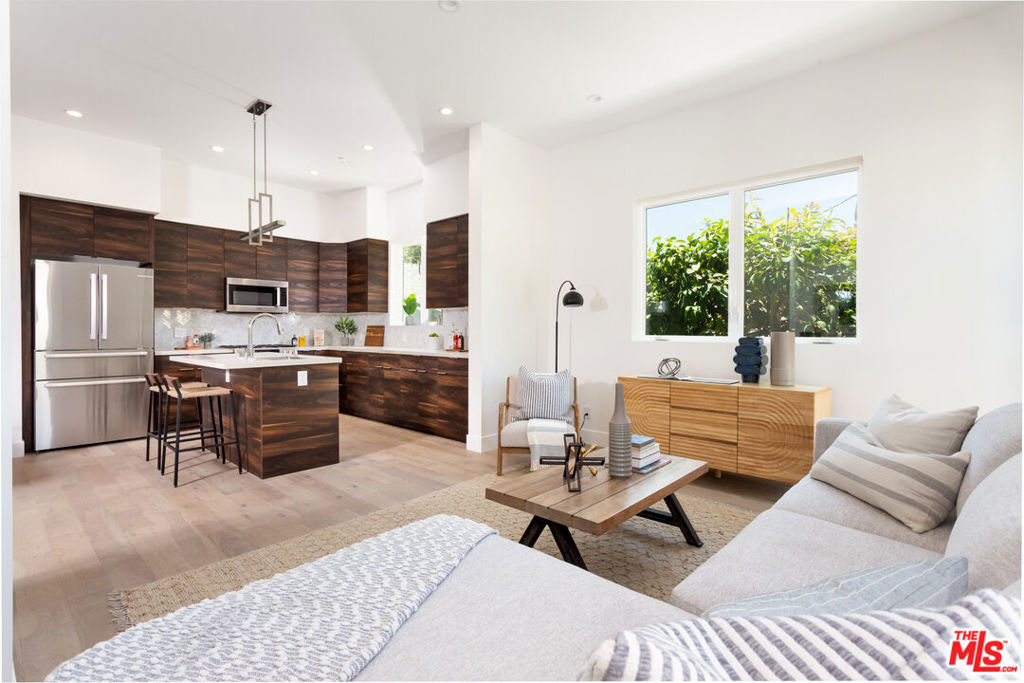This gorgeous and spacious 3-bedroom, 3-bathroom townhome features hardwood floors throughout, an open-concept living room with adjacent dining area, and a gourmet kitchen complete with quartz countertops, custom cabinetry, breakfast bar, and Bosch stainless steel appliances. The main level includes the primary living spaces along with one bedroom and full bathroom ideal for guests or a home office. Upstairs, the sun-filled second floor offers two generously sized bedrooms, including the primary suite with a custom walk-in closet and a luxurious spa-like en-suite bath featuring dual vanities, a separate shower, and soaking tub. Additional highlights include central HVAC, recessed lighting, in-unit laundry, and an attached two-car garage. Ideally located with coveted Culver City services and close to award-winning restaurants, markets, public transit, and all that Culver City and Silicon Beach have to offer.