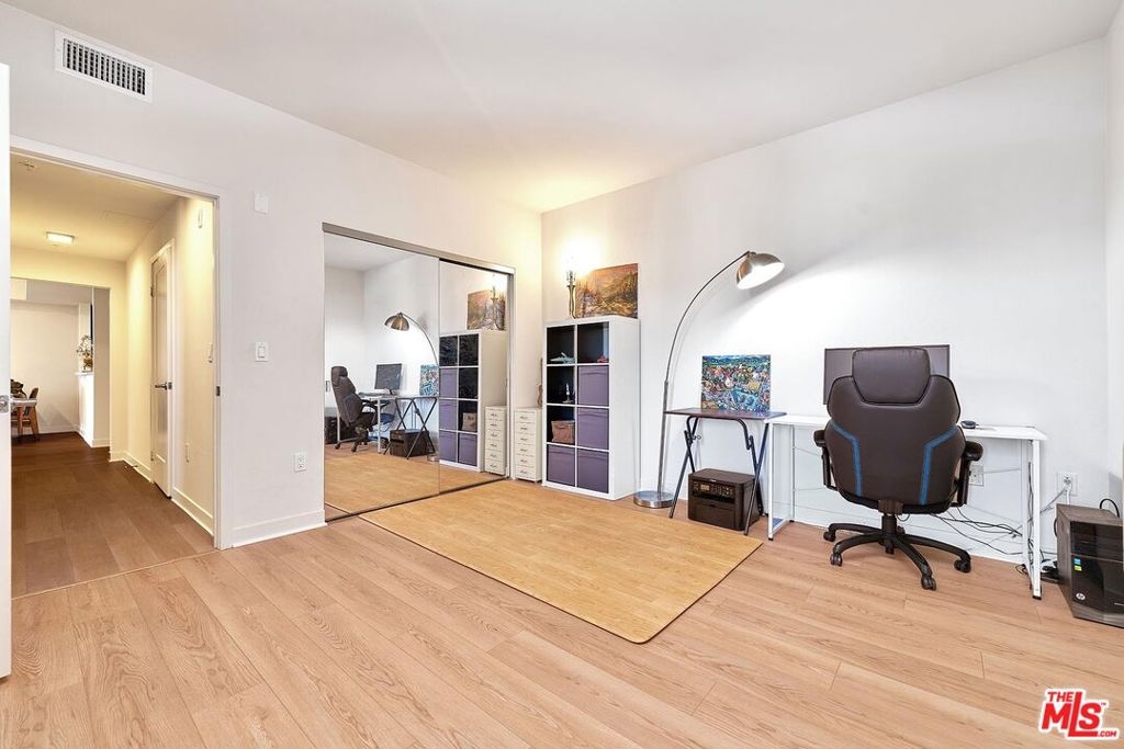 This stunning condo offers soaring ceilings, excellent soundproofing, and abundant natural light. Enjoy Downtown views from the private balcony and a thoughtful layout featuring a spacious primary bedroom and two cozy, adjacent bedrooms.A sleek sliding door between the kitchen and living room adds modern elegance and warmth. With two assigned tandem parking spaces and a prime location near Koreatown and Downtown LA, this home blends tranquility and vibrant city living.Move-in ready and beautifully maintained-schedule a tour today!