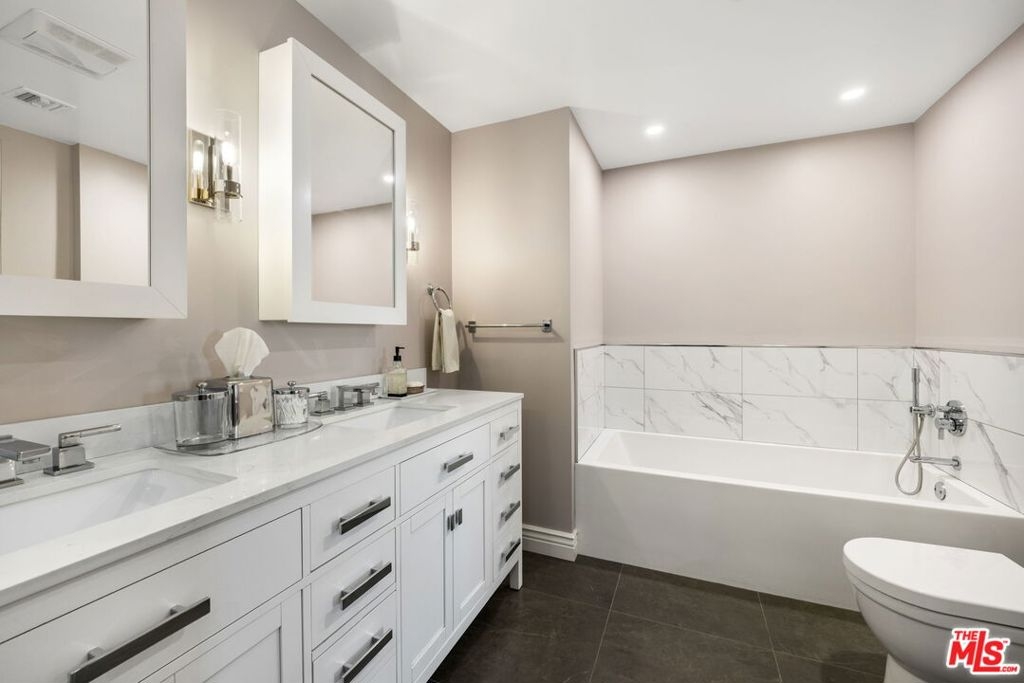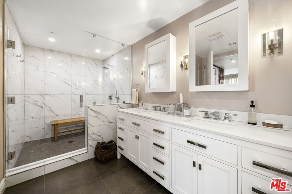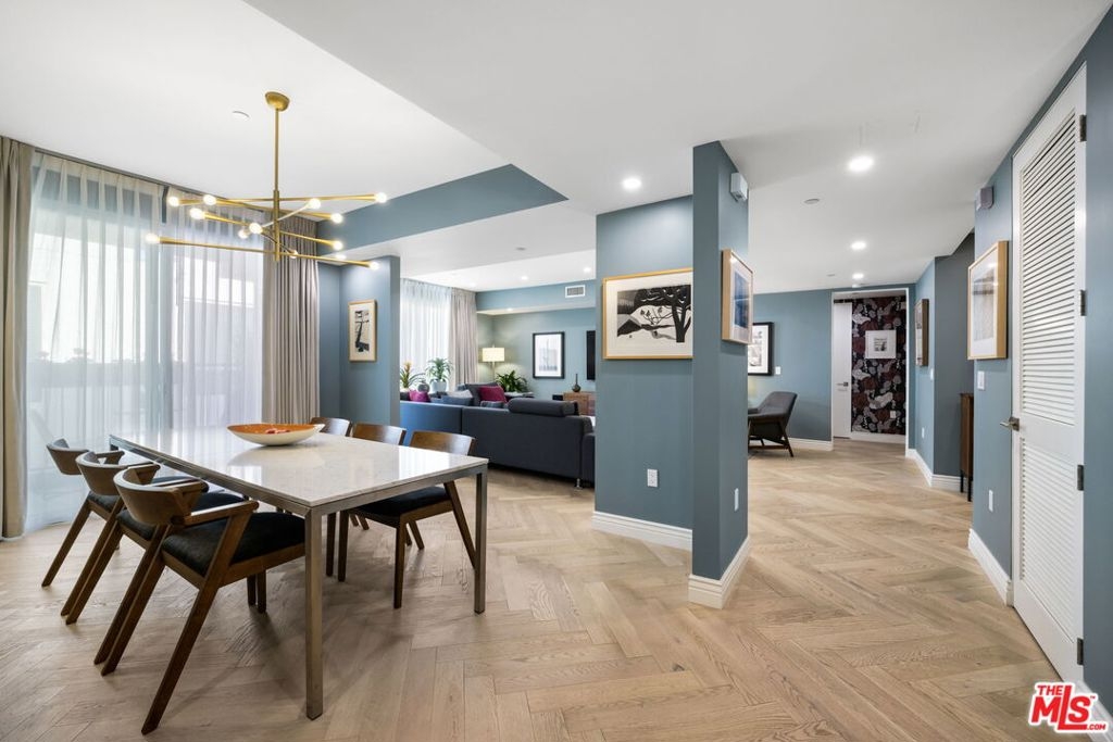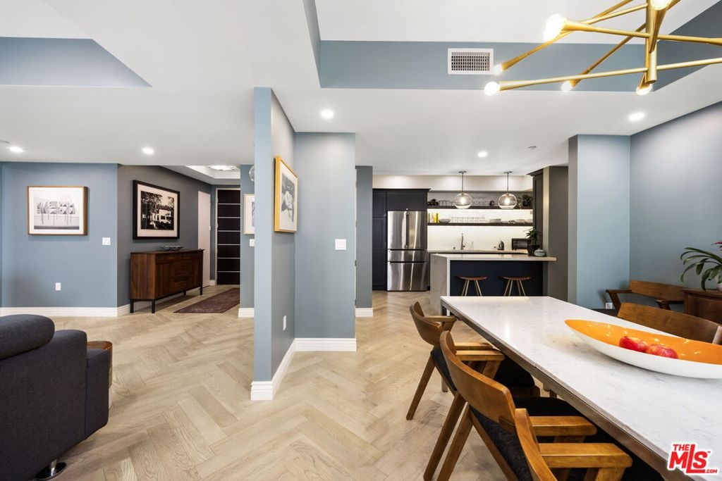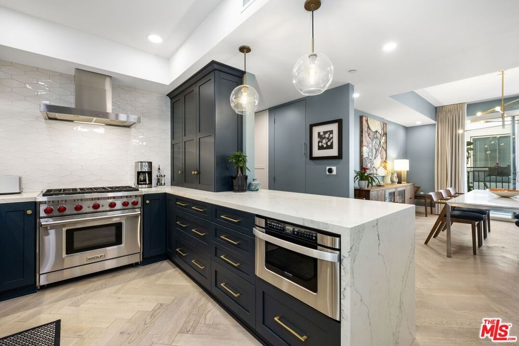 Carefully curated to create a serene oasis, this thoughtfully updated top floor condo in a premier Brentwood Concierge building with 24-hour security is ideally located. Whether working at home, relaxing around the pool, or meeting friends at one of the many top restaurants nearby, this property offers the ultimate in urban living. The open floor plan seamlessly transitions from the living room to the dining room to the kitchen, perfect for entertaining family and friends. The three bedroom floor plan provides flexibility to adapt to your lifestyle. The primary suite has a large walk-in closet and a luxurious bath with separate tub/shower, and dual sinks. Custom finishes include designer wallpaper, herringbone flooring, and custom cabinetry. The building has multiple guest parking, a gym, and pool. Don't miss this unique opportunity.