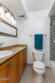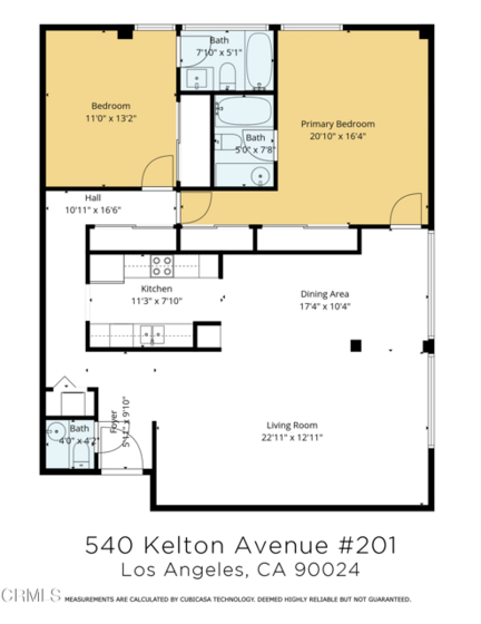Right in the heart of UCLA proud sits this handsome second-floor condo, one of 26 units in a well kept five-story building. The first impression upon entering this corner unit is how expansive it feels, with 9-foot ceilings and open floor plan. The living room/dining room is flooded with natural light from a wall of vinyl, double pane, UV coated, sliding glass picture windows with medium-blade Venetian blinds for privacy. The floor gleams with its wide-plank, wood laminate flooring. There is also classy crown and baseboard molding. The dining area could easily handle six for dinner. There are built-in contemporary wood cabinets. The galley kitchen includes an electric Schott Ceran stovetop and oven, Frigidaire dishwasher, Frigidaire refrigerator, and built-in, stainless steel Frigidaire microwave. There are plenty of contemporary wood cabinets, including a pantry closet. The counters are a sparkly midnight quartz with sea foam, subway glass tile backsplash and a double, stainless steel sink with gooseneck faucet. There are two bedrooms each with their own full bathroom. The master is spacious with plenty of natural light from vinyl, double pane, UV coated windows with medium blade Venetian blinds for privacy. There are not one, but two large closets with large mirror, sliding doors and a ceiling fan/light. The bathroom has sea foam, subway glass tile walls, ceramic tile floor, a granite top vanity, shower over tub, and a Kohler toilet. The second bedroom also has a ceiling fan/light, one large closet with mirror, sliding doors. It's bathroom is fantastically lit by opaque windows. There's a shower over bath, Kohler toilet, a Decolav porcelain basin sink set atop a granite top vanity and ceramic tile flooring. A guest bathroom is situated in the foyer with ceramic tile floor, a Kohler toilet and granite top vanity. The hallway includes a laundry closet with stacked GE washer/dryer, as well as a closet with sliding mirror doors. Each room has a Toshiba portable air conditioner. The condo also includes a spacious storage closet in the basement, a single parking space in a secured garage, outdoor pool and picnic area. HOA fees include water, trash, grounds maintenance and earthquake insurance. Location is near Westwood Village and 405 interstate. Such an ideal condo in an ideal location.