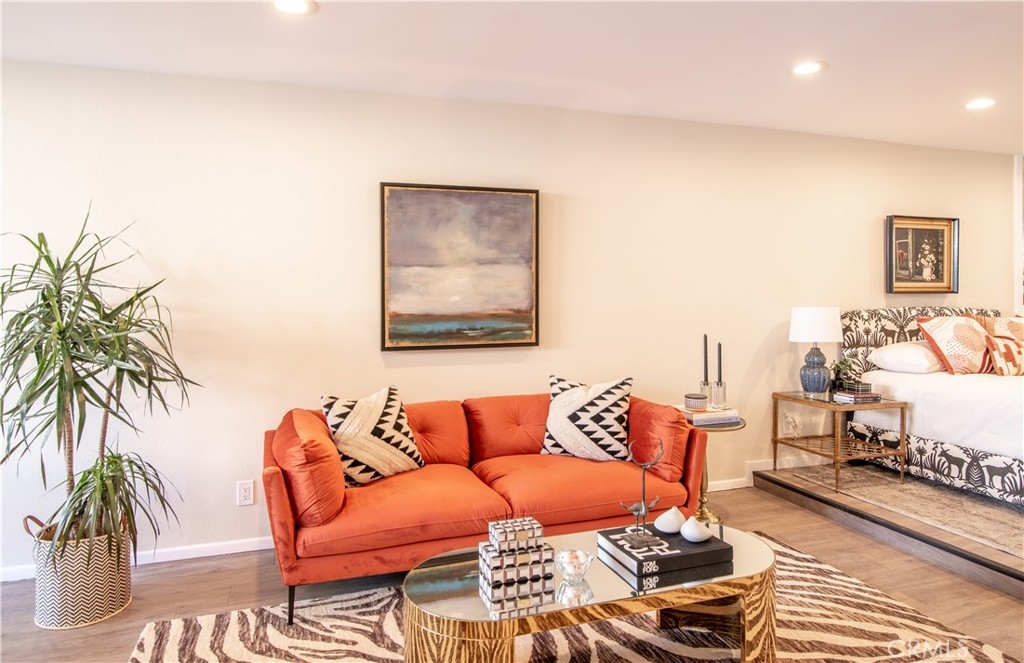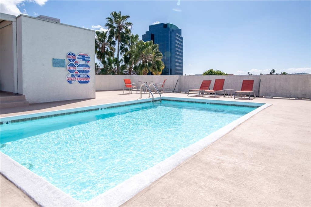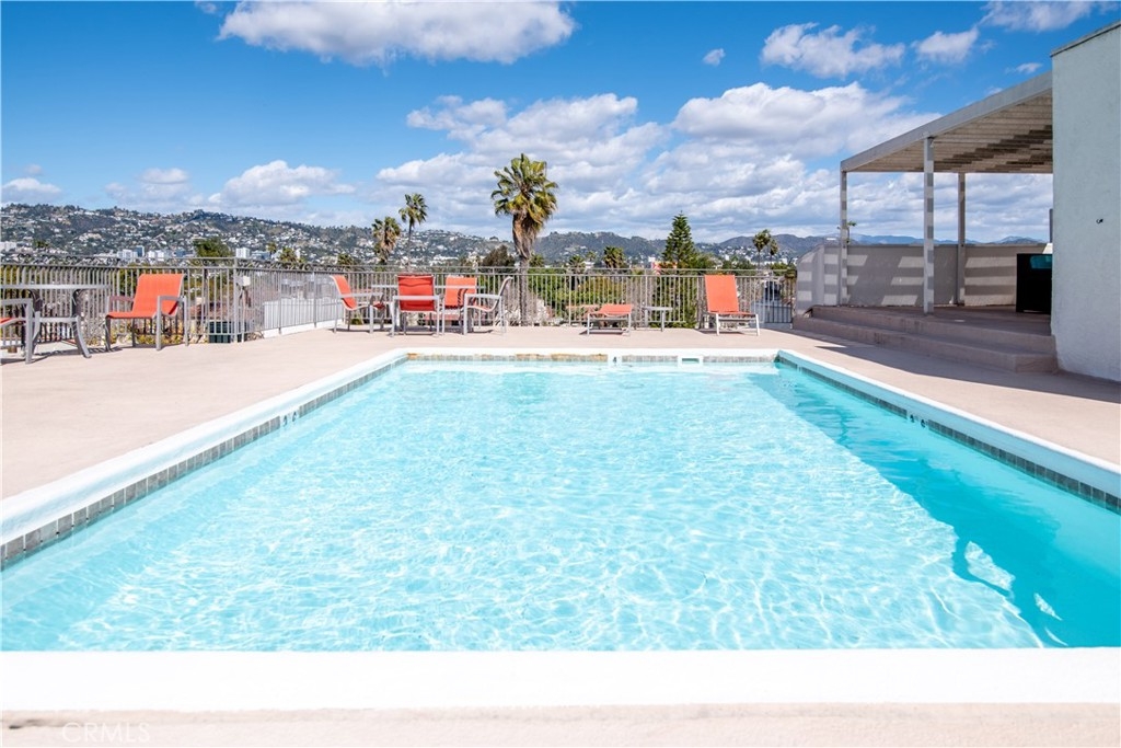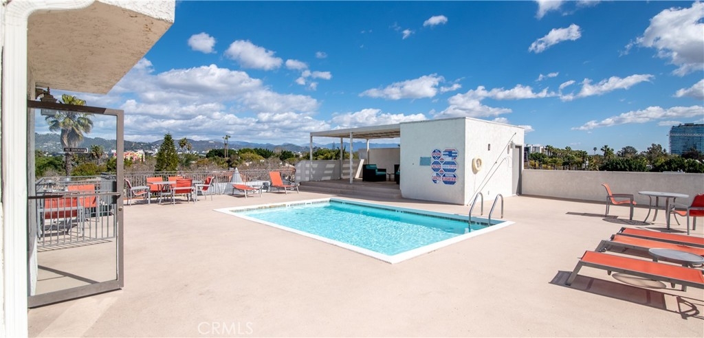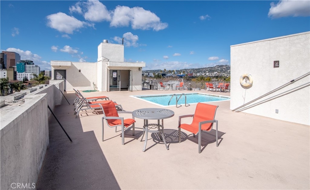 This open floor plan enhances viewing all the amenities this condo has to offer! It also includes a private outside deck, a huge walk in closet and a spacious bath and shower area! The laundry facility is steps away from the front door. The parking space for this unit is conveniently situated in the gated parking structure. For recreation, there is an inviting roof top pool with lounge chairs. All of this and an amazing location near Museum Row, the Miracle Mile, the Beverly Center and the Grove!