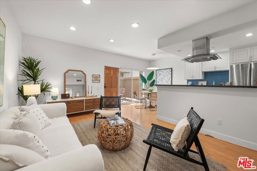 This light filled corner unit has a floor plan with only one shared wall and bamboo floors throughout. The updated open kitchen features granite counters, glass tile backsplash, stainless steel appliances, and a breakfast bar. West facing windows and a sliding glass door fill the home with natural light. The private patio opens directly to the pool and hot tub. The spacious primary suite includes two customized closets, one a walk in, which is a rare find. The spa inspired bathroom has stone tile and wood accents, a soaking tub, and a separate walk-in shower. Additional highlights include central heating/cooling and a tankless water heater. Building amenities include a gym, sauna, on site management, guest parking, and a secured garage with one dedicated space. Perfectly situated near UCLA, Brentwood Village, Barrington Park, Whole Foods, San Vicente Blvd, and some of the Westside's best dining and shopping, this condo offers an exceptional lifestyle in the heart of Brentwood.