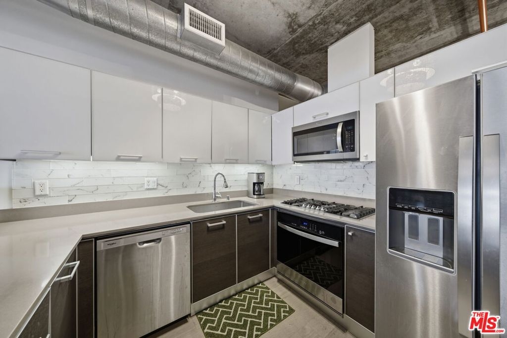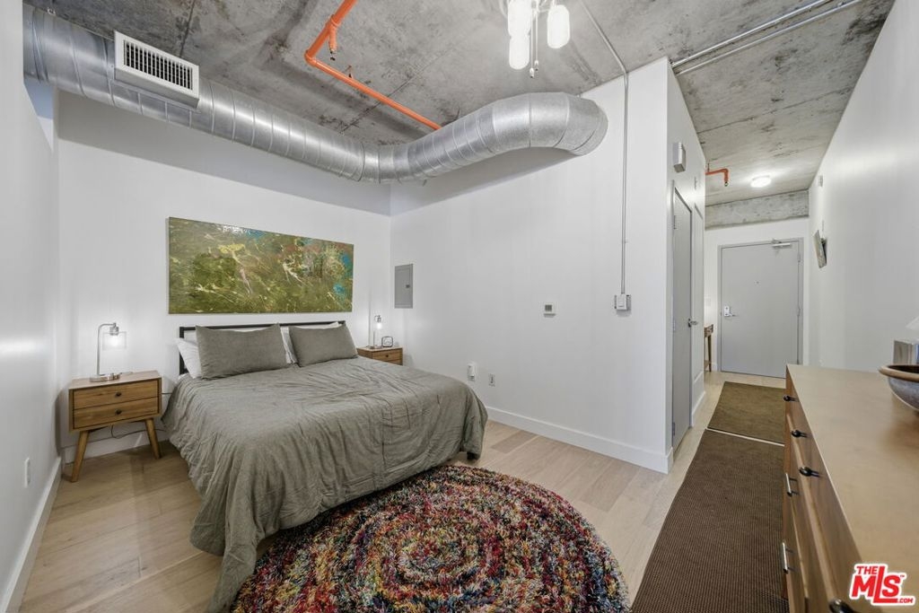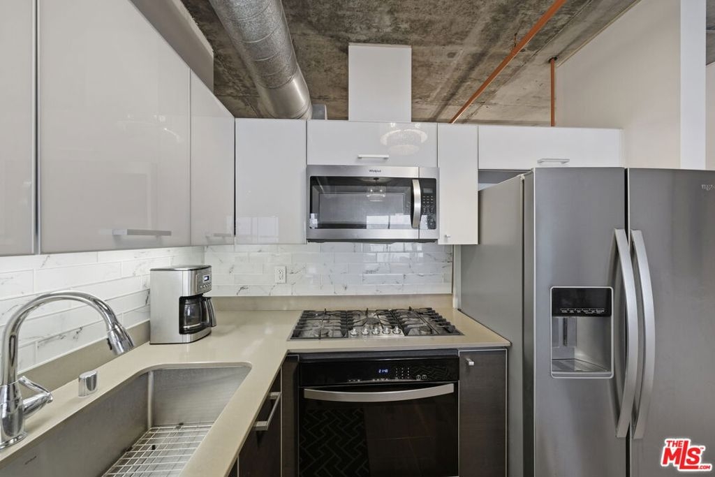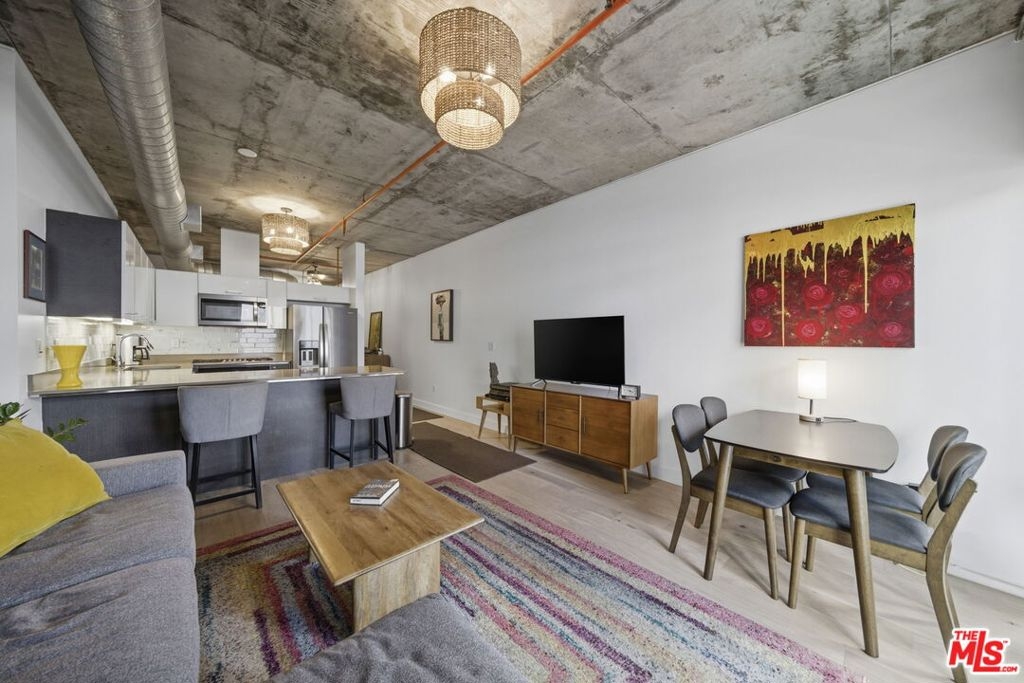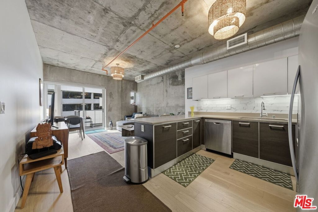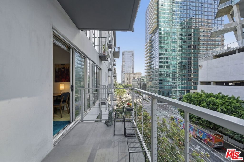 Step into the heart of DTLA at the highly sought-after Market Lofts this 4th-floor industrial-chic one bedroom has that true "Downtown" vibe with soaring ceilings, oversized windows, and an open layout that just feels right. The views are a major highlight here: you've got a great look at the DTLA skyline right off Flower St, giving you that iconic city-light backdrop day and night. The kitchen is a standout for this building with a peninsula that adds bar seating (rare for these units) and makes the space perfect for morning coffee, casual dinners, or entertaining without sacrificing the loft feel. The layout also includes a walk-in closet for legit storage, which is huge in a one-bedroom loft. And if you want indoor/outdoor living, this one delivers in a big way this unit has the largest balcony you'll find in the building, giving you the kind of outdoor space that's almost impossible to come by in DTLA. Market Lofts rounds it out with resort-style amenities including a pool, gym, screening room, and a game room with a pool table, plus Amazon lockers for everyday convenience. Add in a grocery store in the building and you're minutes from coffee, dining, Whole Foods, Ralphs, LA Live, and more this is downtown living done right.
