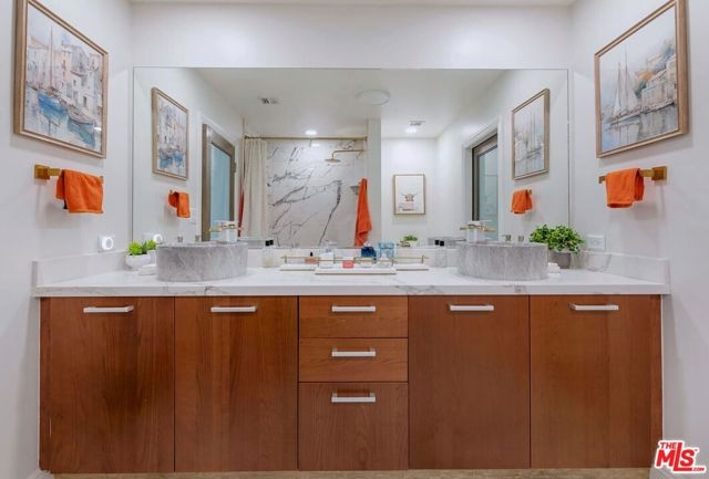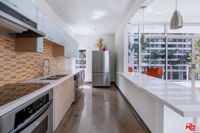 Located in the highly sought-after South Park neighborhood, this top-floor condo offers the perfect combination of luxury, convenience, and comfort. Step inside to 14-ft ceilings and an open, airy living space. The updated kitchen, complete with high-end finishes and fully furnished, leads into a spacious living area with an 85-inch TV, ideal for both relaxing and entertaining. Enjoy a sunny morning on your private balcony with views of the pool, or unwind later in the jacuzzi after a workout in the fully equipped gym. The unit boasts a large walk-in closet, an upgraded bathroom with quartz countertops, and ample natural light throughout. With Whole Foods, restaurants, coffee spots, and entertainment venues just steps away, everything you need is at your doorstep. Plus, enjoy the convenience of two assigned parking spaces on the same floor. The building also offers 24/7 security and a secured entry. This condo is perfect for a work-life balance with the added bonus of zoning that allows you to operate your business here. Whether you're looking for your dream home or a smart investment in the heart of LA, this property is a must-see!