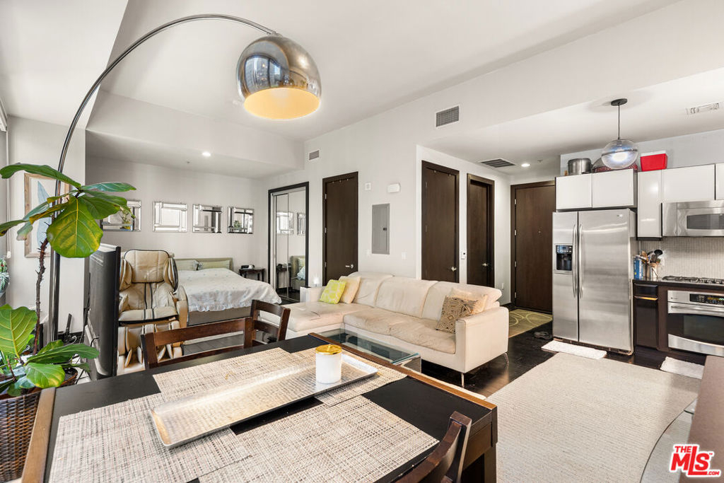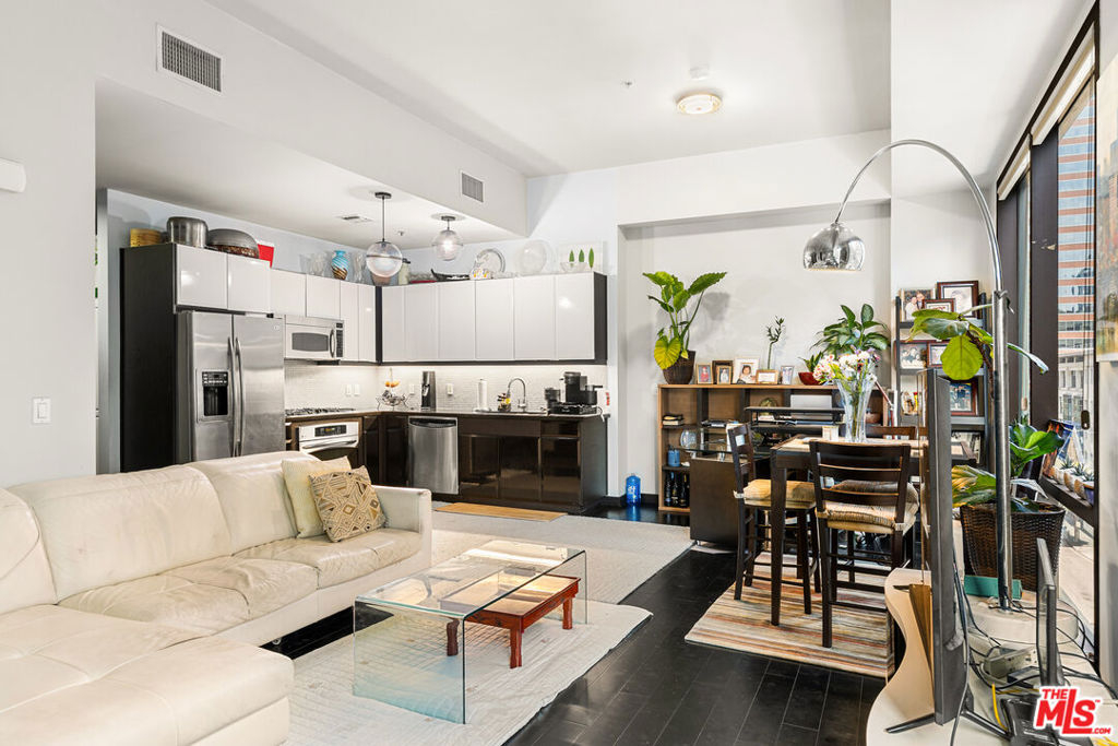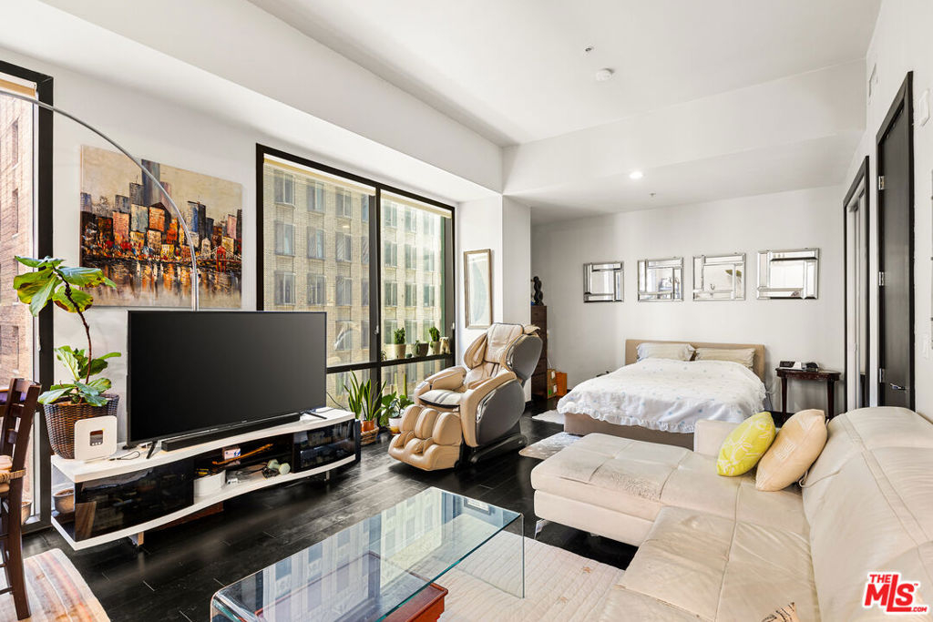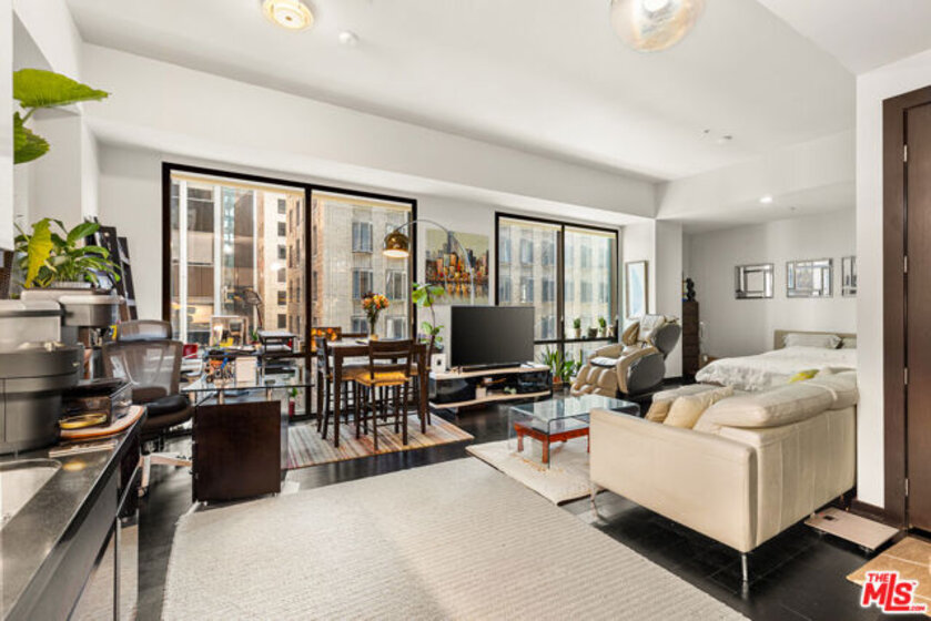 Welcome to the Hope Street Lofts. Perched on the 7th floor, the highly desirable end unit is a harmonious blend of modern elegance and urban sophistication. The open floor plan loft boasts floor-to-ceiling glass walls, tall gallery walls, 12-foot ceilings and warm dark hardwood floors. The East facing condo is illuminated by an abundance of natural light. The sleek kitchen features updated cabinetry, granite countertops, stainless steel appliances and a dishwasher. The bathroom features a soaking tub. Washer/dryer are included! 1 unassigned parking space included in the parking garage - exclusive to the Hope Street Lofts, with an elevator bank giving direct access to the 11th floor as well as the lobby. Hope Street Lofts is a boutique art deco condo building with only 80-units. Building amenities include 24/7 security, front desk concierge, a fitness center, gameroom, a rooftop with panoramic Downtown views, a helicopter pad, sundeck, barbecue grills and a chic wet bar. The rooftop was recently redone and new furniture has been ordered. The HOA fee covers water, trash, gas, sewage, 24/7 security and maintenance of the common areas. Located in the Financial District and directly above the 7th Street Metro Station. Access the best of urban dwelling at your doorsteps! Enjoy the best of food and beverages at the trendy Javiers or Bottega Louie. Near michelin star restaurants, world class museums, concept coffee shops and endless entertainment options. Across the street from the Bloc and Joeys. Only 2 blocks from Whole Foods and the Broad Museum is a stone's throw away. Experience a night at the LA Opera or a concert at the Walt Disney Concert Hall - only 4 minutes away. Attend a Lakers game at Crypto Arena. Entertain family and friends at LA Live. Easy access to freeways and public transportation. Truly, the best location in Downtown L.A.