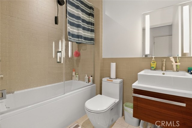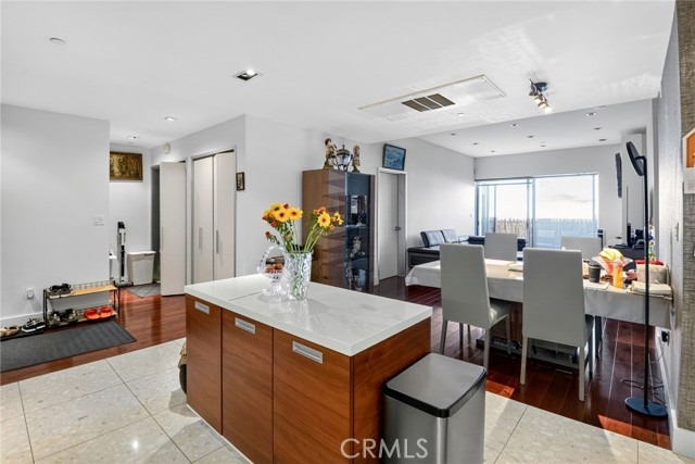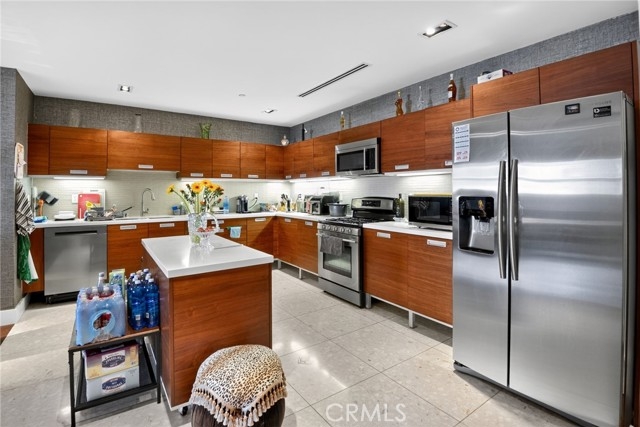 Just moments from the world-renowned Walk of Fame and Chinese Theater, this stylish condo is set in an award-winning luxury community surrounded by dining, shopping, and entertainment. This single-level, contemporary residence offers a spacious open floor plan with a refined yet glamorous vibe. Situated on the third floor, the home boasts soaring 9-foot ceilings, a private balcony, and access to premium amenities including a 24-hour doorman, resort-style pool, fitness center, billiards lounge with TV, and ample guest parking. The gourmet kitchen showcases a central island, quartz countertops, Pedini cabinetry, full tile backsplash, and a high-end Jenn-Air stainless appliances. Additional features include Caesarstone surfaces, recessed lighting, an in-unit washer/dryer, and a welcoming fireplace. The thoughtful layout provides a powder room for guests, a laundry nook, and abundant closet space including a walk-in. Living and dining areas feature wood floors, recessed lighting, fireplace, and direct balcony access through sliding glass doors. Two spacious bedrooms each serve as a private retreat with en-suite baths enhanced by designer tile and fixtures. Comfort and convenience continue with central A/C, a security system, spa, outdoor BBQ area, and two side-by-side parking spaces.