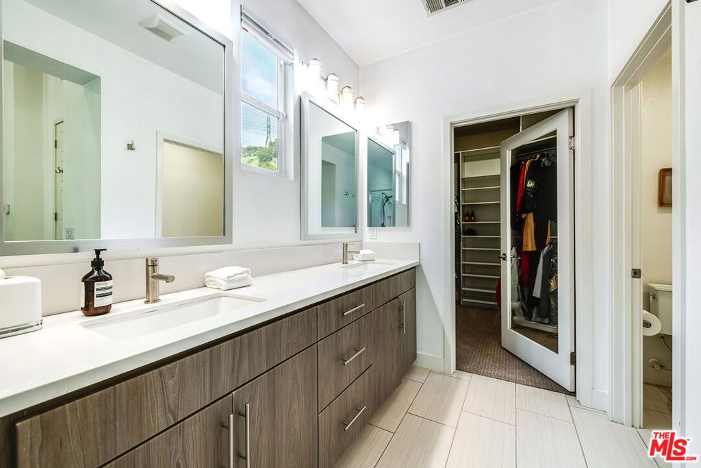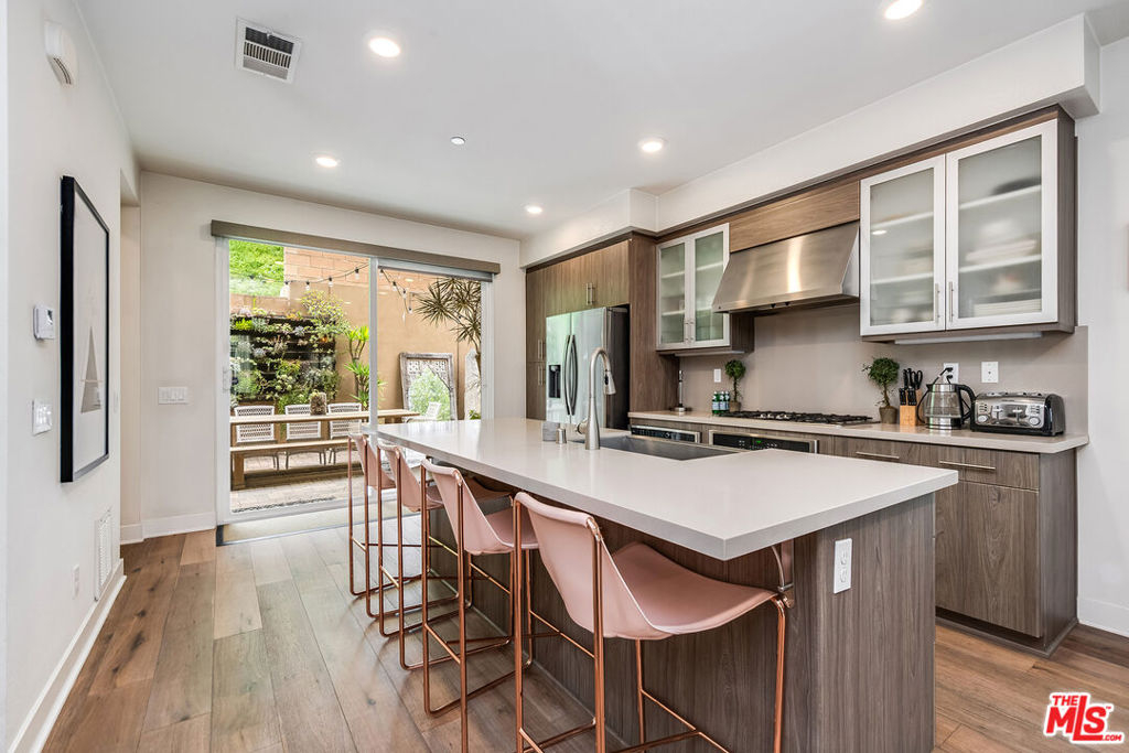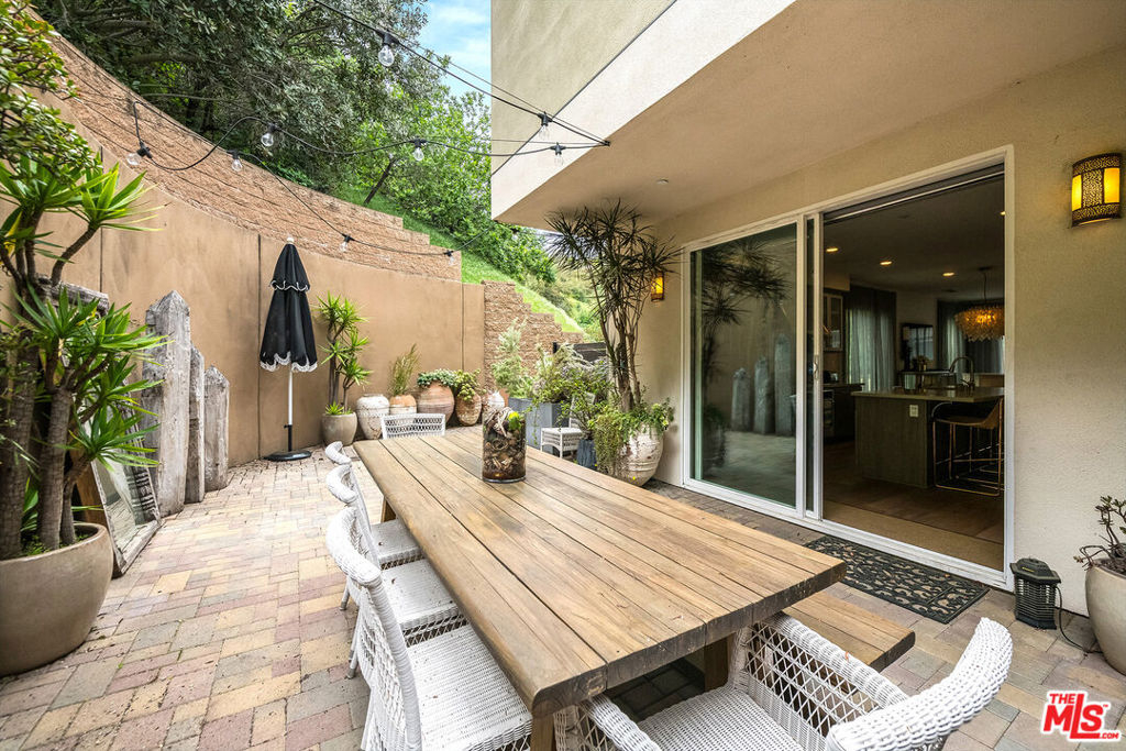 Incredible value for the most desirable and highly coveted unit in the complex! Located on upper Gill Way - in the most quiet and peaceful section of the community, this corner unit features maximum privacy with no neighbor on the Western side. Encapsulated by lush greenery and nature, enjoy extra large patio space only afforded to the corner unit which includes the private side entrance for even more outdoor space and beautiful outdoor dining. Abundant natural light pours in through energy-efficient L-E windows, accentuating a modern and tasteful color scheme throughout. The open-concept kitchen is outfitted with sleek custom cabinetry, durable Caesarstone countertops, and the full accompaniment of stainless steel, energy-saving appliances. Spa-inspired bathrooms showcase imported vanities, luxurious surfaces, elegant Moen fixtures, and water-saving features. Built with sustainability in mind, this home includes programmable thermostat, high-efficiency lighting, tankless water heater, insulated air ducts, and prewiring for 210V hybrid vehicle charging. Ideally and conveniently located with easy access to the Hollywood Bowl, Runyon Canyon, Universal Studios, and the vibrant heart of downtown LA. A true must see property at an exceptional value!!