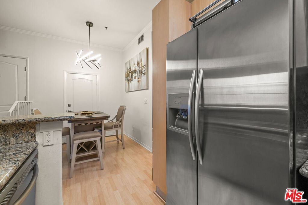 Location, location, location! This Mediterranean Condo in the Westchester / Ladera Heights area is a real find! Step into your stylish, move-in ready escape in the city! Tucked inside a charming 1990's Mediterranean-style complex, this condo blends elegance, comfort, and convenience. The charming living room with its soaring ceilings, natural light, and electric fireplace make it warm and welcoming along with its big windows which frames a beautiful courtyard accented in a Spanish Mediterranean composition. The updated kitchen is fully equipped with appliances that will remain and there is a breakfast bar area which flows into the dining area to create the perfect set-up for entertainment. There are two roomy bedrooms, including a primary bedroom with its own fireplace and there are also updated bathrooms. There is an in-unit stacked washer/dryer, central A/C, and a bar. The complex offers a fitness center, a peaceful courtyard with Saltillo tiles, and a secure gated garage. This unit comes with two tandem parking spaces and a small storage closet. The complex is near the 405 Fwy, LAX, Culver City, Playa Vista, the Marina, a major shopping center, coffee cafes, and restaurants. As a bonus, the complex is within minutes of the SoFi Stadium, Kia Forum and the Intuit Dome, which offers top-tier entertainment.