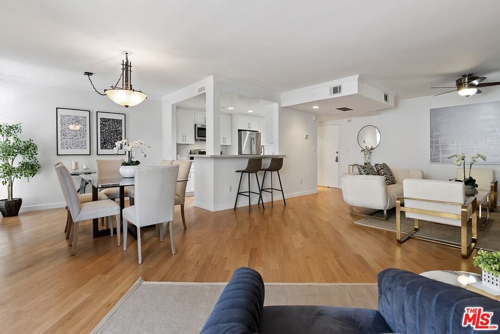 Beautifully updated spacious 1 bed/1 bath condo with open floor plan in prime Brentwood location within a few blocks of the incredible San Vicente retail, coffee shops and restaurants including Starbucks, Coffee Bean, Alfreds, Whole Foods, Jon & Vinnys, Coral Tree Cafe & Kreation. Living room w/ separate open den area fireplace & sliding door to large tiled balcony overlooking courtyard patio & pool. Newly remodeled designer kitchen opens to dining room & living room w/ breakfast bar, quartz countertops, newer cabinetry & stainless steel appliances. Oversized primary bedroom w/ crown molding and newly installed carpet w/ custom built walk-in closet. Updated full bath w/ tile flooring, granite top sink & glass shower door. Additional features include newer light stained hardwood flooring, central a/c & newly painted interior. Secured one parking space w/ storage, pets ok, sparkling pool & outdoor common patio & guest parking. Move-in ready!