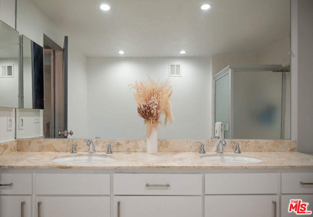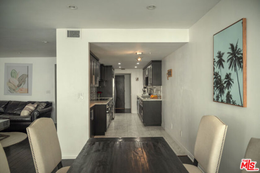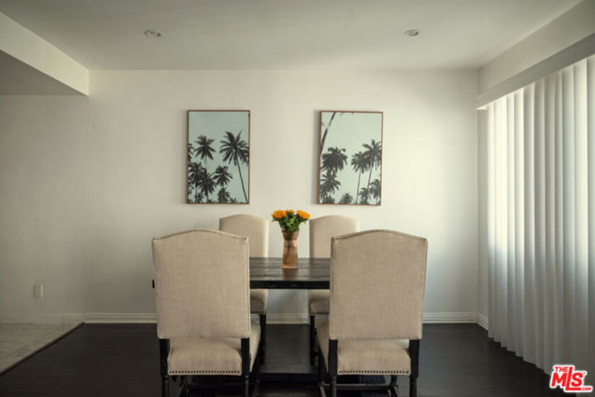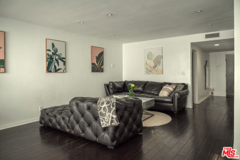 Oversized, quiet, and private single story flat nestled in the Hollywood hills walking distance to Runyon Canyon and Sunset Blvd, best value in the area. Hidden on a shady street amongst the trees in a mid century building with a pool and spa by the Outpost Estates and Nichols Canyon, the home features a classic double door entrance into a large living space with balconies off the living room and both bedrooms. Adjacent to the formal dining area is a spacious kitchen with quartz countertops and stainless steel appliances. The primary bedroom suite has en suite bathroom with double vanity and built out walk-in closet. Second guest bedroom features its own sliding glass door and balcony, with a second full bathroom and hallway storage completing the home. The flat comes with two side-by-side parking spaces, ample storage, and community laundry (in-unit laundry can be added with HOA approval). The boutique building features a pool and spa surrounded by mature trees and foliage for privacy. Incredible location just steps to the entrance of Runyon Canyon and just a short walk to Wattles Park, shops and restaurants on Sunset Boulevard, the Hollywood Bowl, Magic Castle, and Roosevelt Hotel. Great space and value in the tree-lined Hollywood Hills.