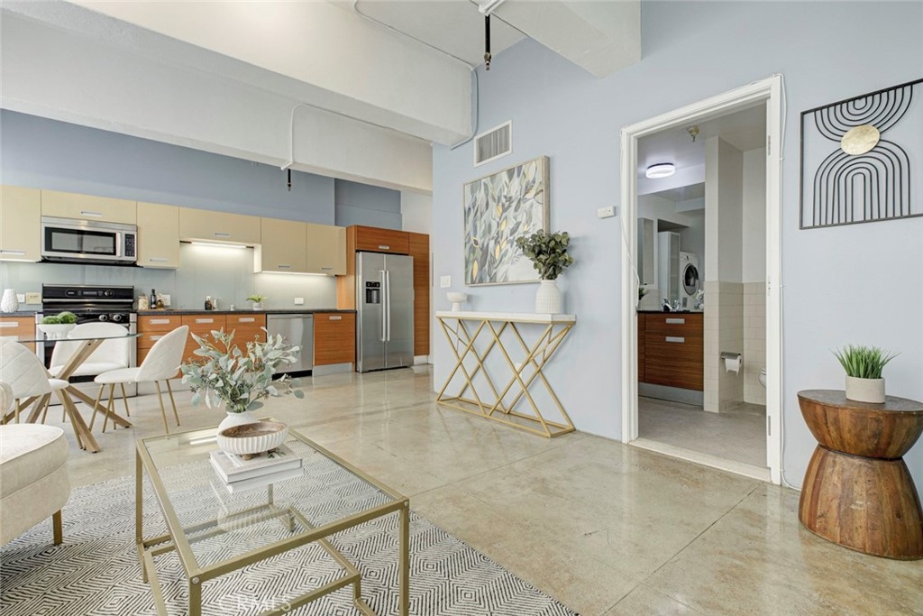 Exceptional Loft in the Historic Cornell Building at Santee Village Discover a rare opportunity to own a Loft in the iconic, historical Cornell Building, one of the three buildings that form the dynamic Santee Village in the Fashion District. This meticulously restored community, completed in 2007, is Mill Act-approved, offering owners up to a 70% property tax reduction. This bright and stunning loft boasts a wall of original industrial steel-framed windows that flood the expansive living area with natural light. The open kitchen features modern cabinetry and premium stainless-steel appliances. Full bathroom offers a full-size bathtub, counters, and a stackable washer/dryer for ultimate convenience. A walk-in closet and a bedroom cleverly divided by a half-wall for added privacy. “Parking for this unit includes one deeded, dedicated parking space # 56 in the nearby Maple Street garage with service by an HOA-provided shuttle for easy access, as well as loading space conveniently located below the complex” Santee Village residents enjoy world-class amenities, including: 24-hour Courtesy Patrol and Secured Access, a breathtaking rooftop with panoramic views of DTLA, equipped with BBQ areas, a pool, spas, and a basketball court and an on-site fitness center and a lively courtyard hosting Virtu Coffee, a gourmet market, and a variety of restaurants, such as Broken Mouth, Holy Basil, and Vegan Hooligans. Centrally located, this Loft is moments away from the Flagship Apple Store, Metro access, and the vibrant heart of DTLA, making it the perfect urban retreat for those who value style, convenience, and luxury.