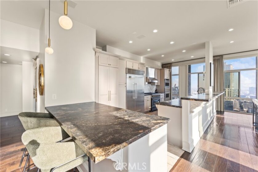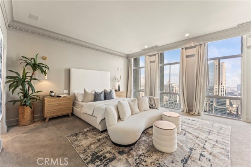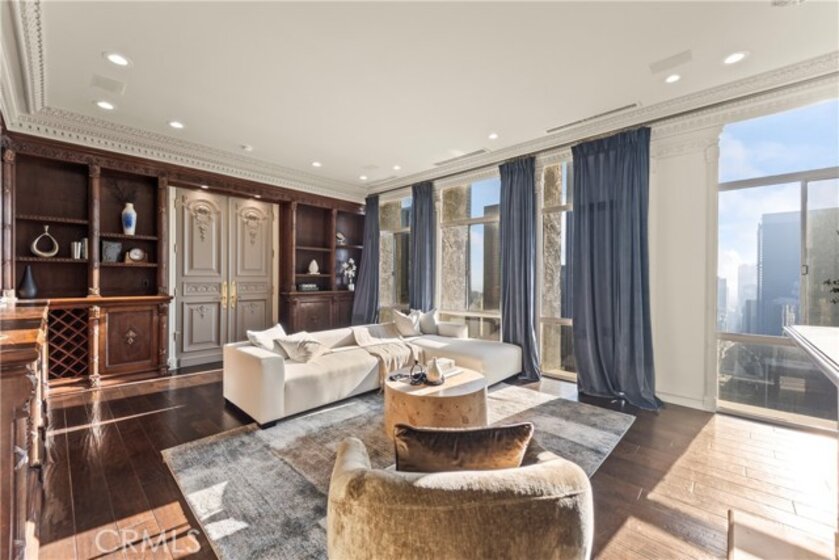 Luxury Live Auction! Bidding to start from $1,400,000! High above the cultural heart of Downtown Los Angeles, this Penthouse at Bunker Hill Tower occupies a rare vantage point—an aerie suspended on the 32nd floor, where the city’s skyline becomes both backdrop and art. Recently refreshed in a refined neoclassical palette, the residence blends timeless architectural lines with the openness and light only a true penthouse can offer. Inside, soaring ceilings, exclusive to the top floor, create a sense of vertical drama. Soft architectural detailing, graceful moldings, and beautifully scaled rooms evoke an understated luxury not often found in contemporary high-rise living. Walls of glass pull the city inward, offering uninterrupted views that shift from morning clarity to evening glow. A thoughtfully composed floor plan provides two spacious en-suite bedrooms, two and one-half baths, and a library/den with a built-in wet bar, ideal for quiet study or intimate gatherings. The expansive living and dining areas invite both grand entertaining and elegant everyday living. An in-unit washer/dryer adds modern convenience rarely available in the building. Bunker Hill Tower is one of Los Angeles’ most enduring full-service addresses, offering an array of amenities more akin to a private resort: a 24-hour concierge, Olympic-size pool, spa, two fitness centers, wet and dry saunas, tennis and pickleball courts, lush outdoor spaces, BBQ areas, and a residents’ market and salon—all seamlessly integrated into daily life. With all utilities included in the HOA, comfort and ease are woven into the fabric of ownership. Set moments from the Disney Concert Hall, The Broad, and the city’s finest dining and cultural institutions, this Penthouse is both sanctuary and statement—an elevated retreat where classical design, modern convenience, and sweeping views converge in a singular Downtown offering.