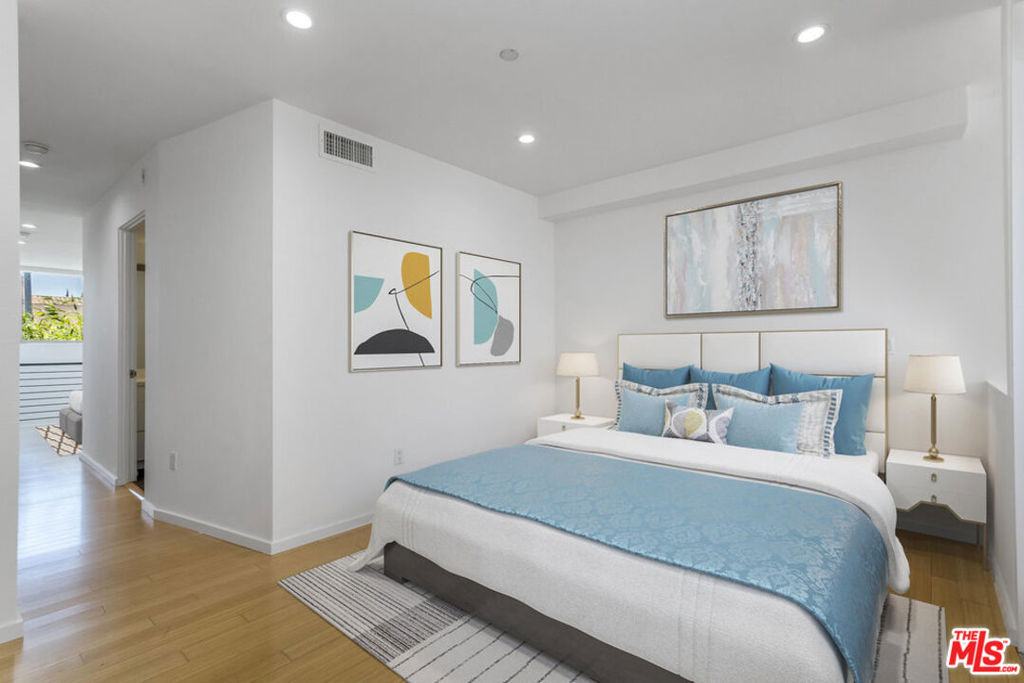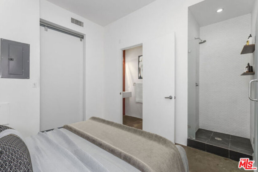 Award-winning architect Lorcan O'Herlihy, FAIA, designed the Wilcox Avenue Lofts to redefine urban living, and 17 years later, Loft #5 remains one of the best in the complex. Positioned on a prime corner with a direct ground-floor entrance, this two-story, 1,330sq.ft. unit offers two full bedrooms, two bathrooms, and a den/office that can serve as a third bedroom, complete with a barn door for privacy. South- and east-facing walls of glass flood the living, dining, and kitchen areas with natural light. The kitchen and bathrooms stay true to O'Herlihy's original aesthetic, with tasteful updates including a Samsung stainless-steel fridge and LED lighting. Additional features include newly-installed frosted sliding closet doors in both upstairs bedrooms. Gated and secure, the WA Lofts are well located near Larchmont, Gold's Gym, Hancock Park, and Paramount Studios; central yet removed from high-traffic zones. Sale includes two assigned tandem parking spaces and guest parking in a subterranean garage. HOA dues are $785 and include earthquake insurance.